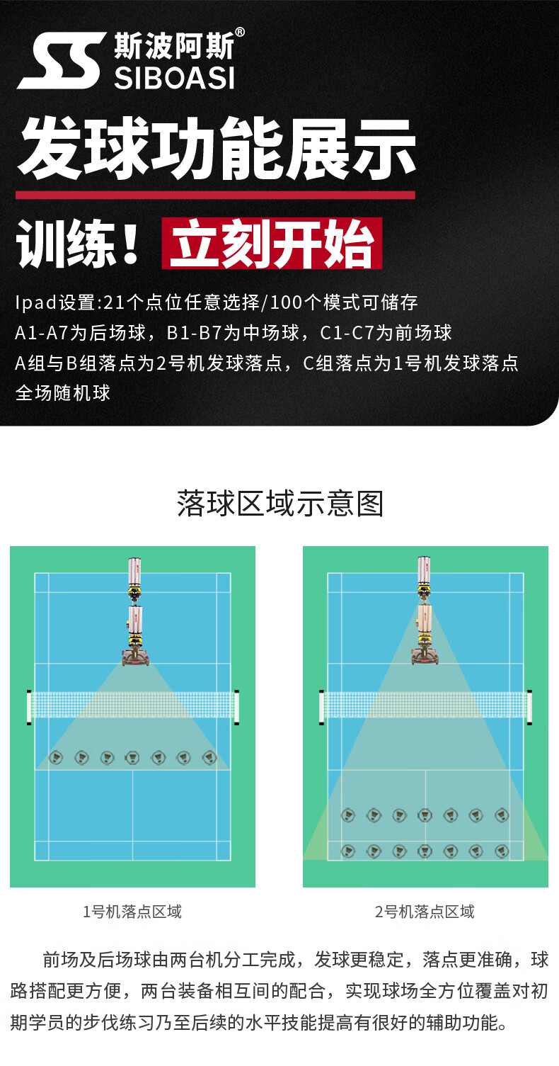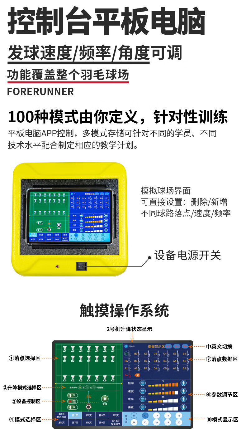 2.智能发球,高度可自由设定,(速度、频率、角度等可自定义);
