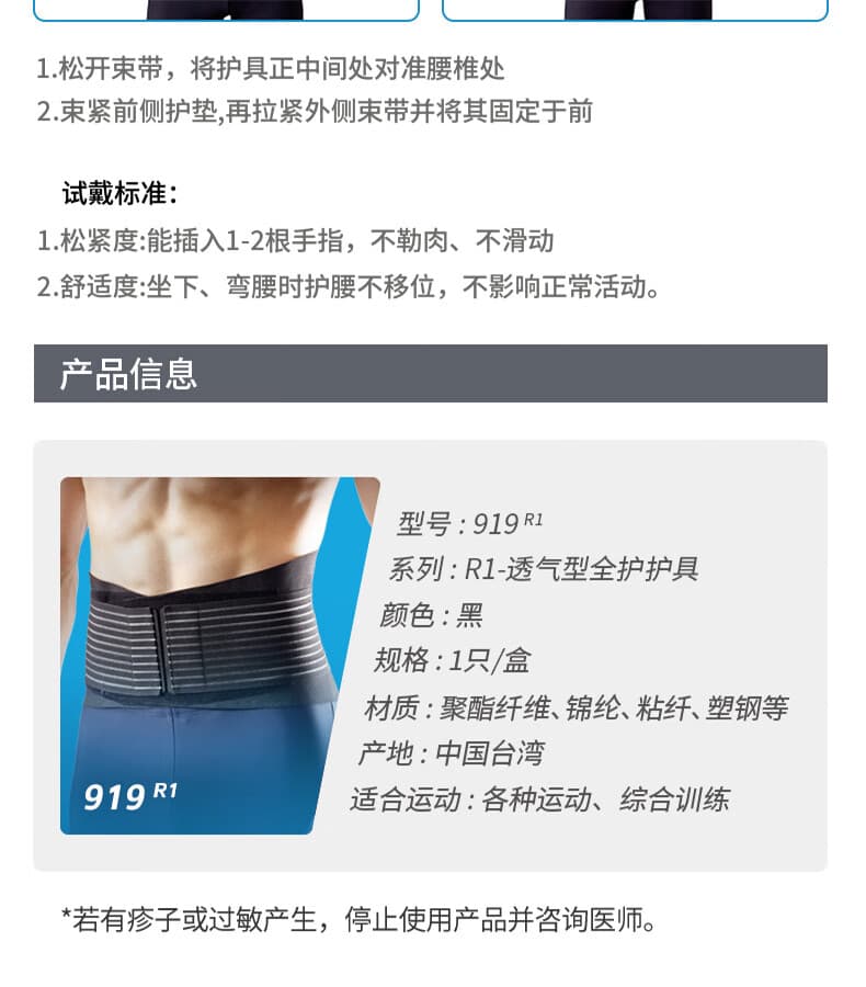 LP欧比 919r1可调式支撑护腰护腰带运动支撑透气型篮球深蹲防护护具男女士通用