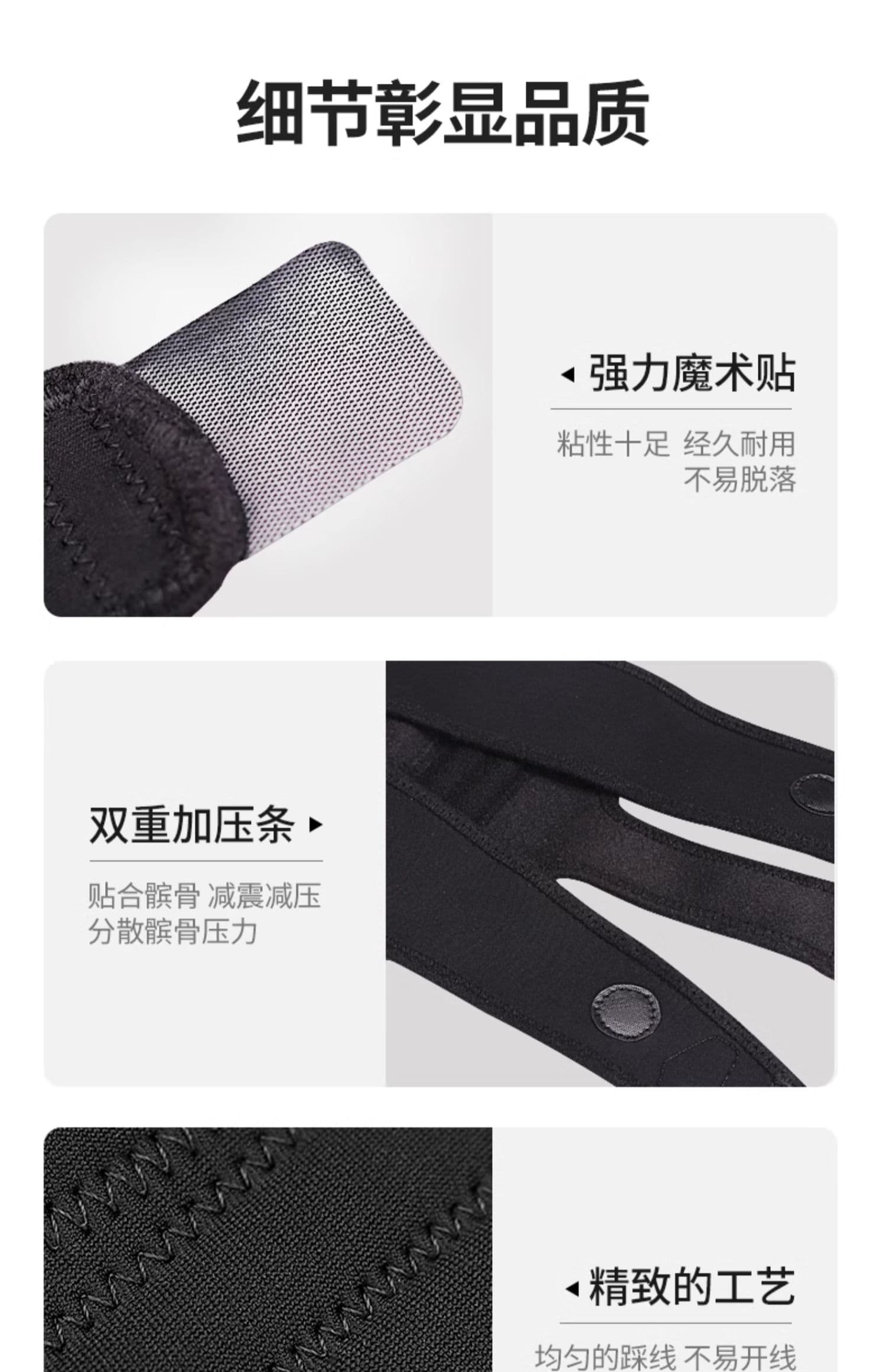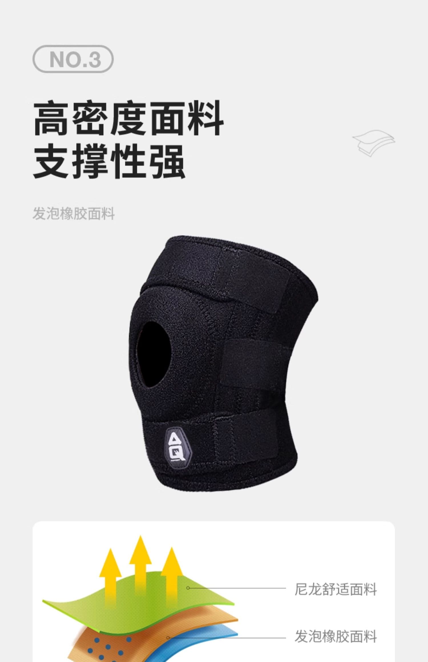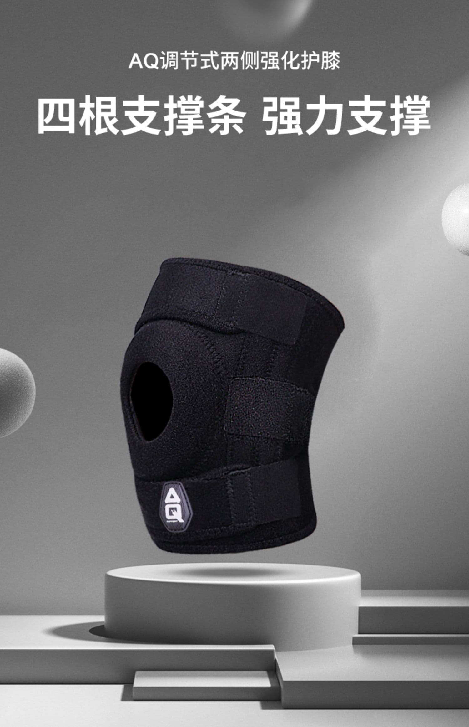 AQ护具 W53501可调式髌骨稳定护膝 护膝运动男膝盖篮球羽毛球髌骨关节损伤跳绳跑步女专业半月板套 黑色