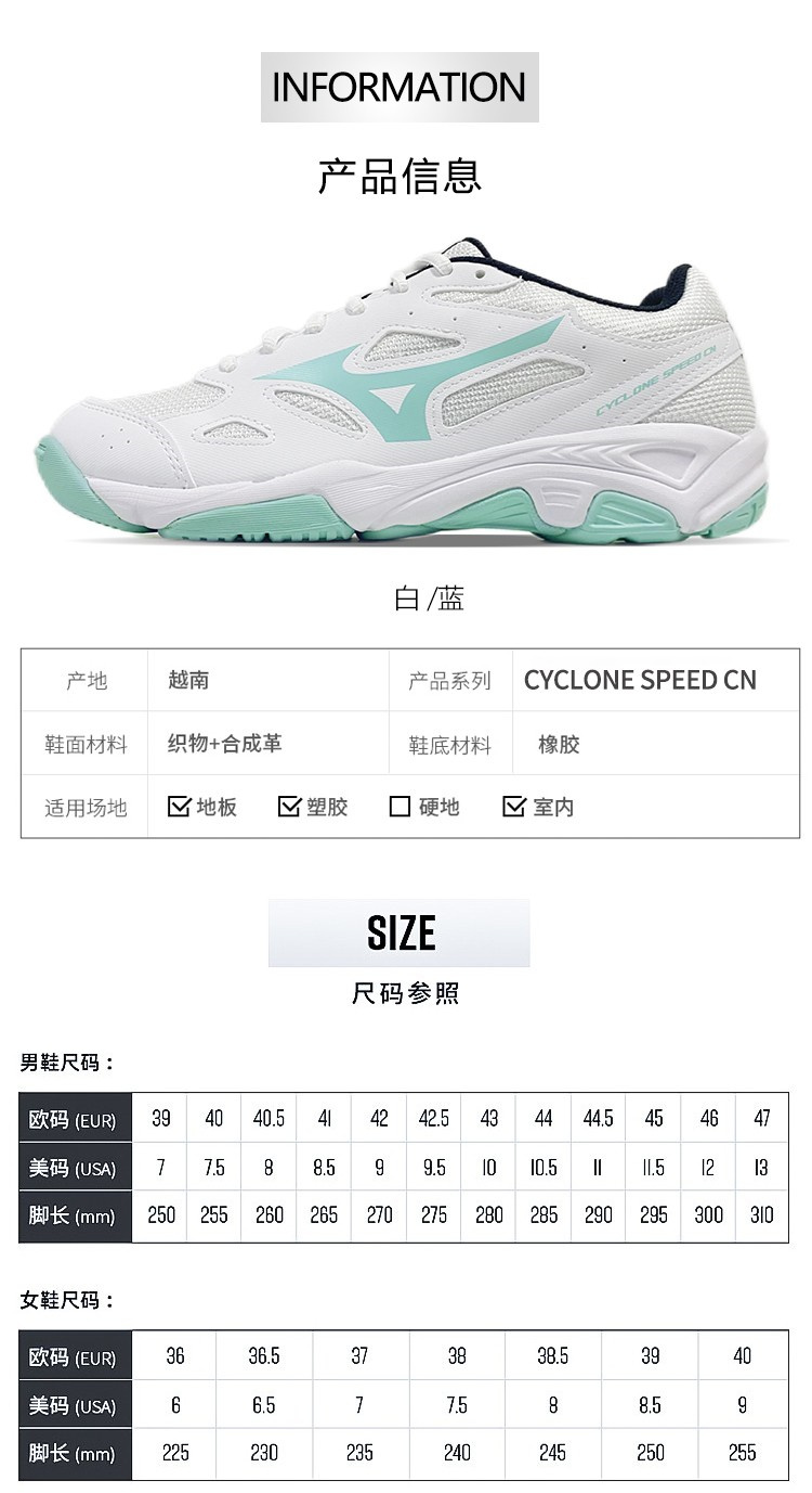 美津浓男女款综合训练鞋CYCLONE SPEED 白天蓝 V1GA218111