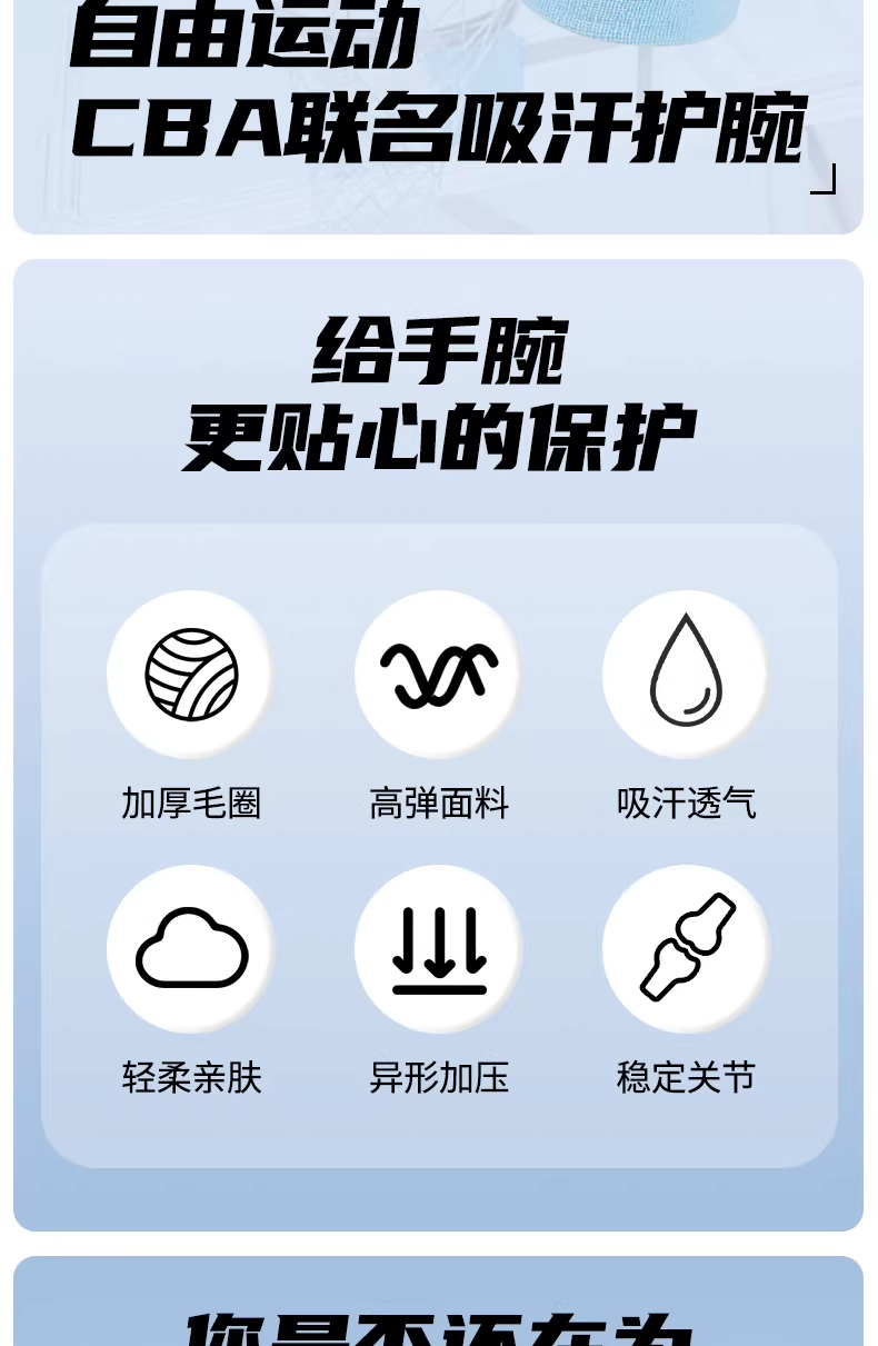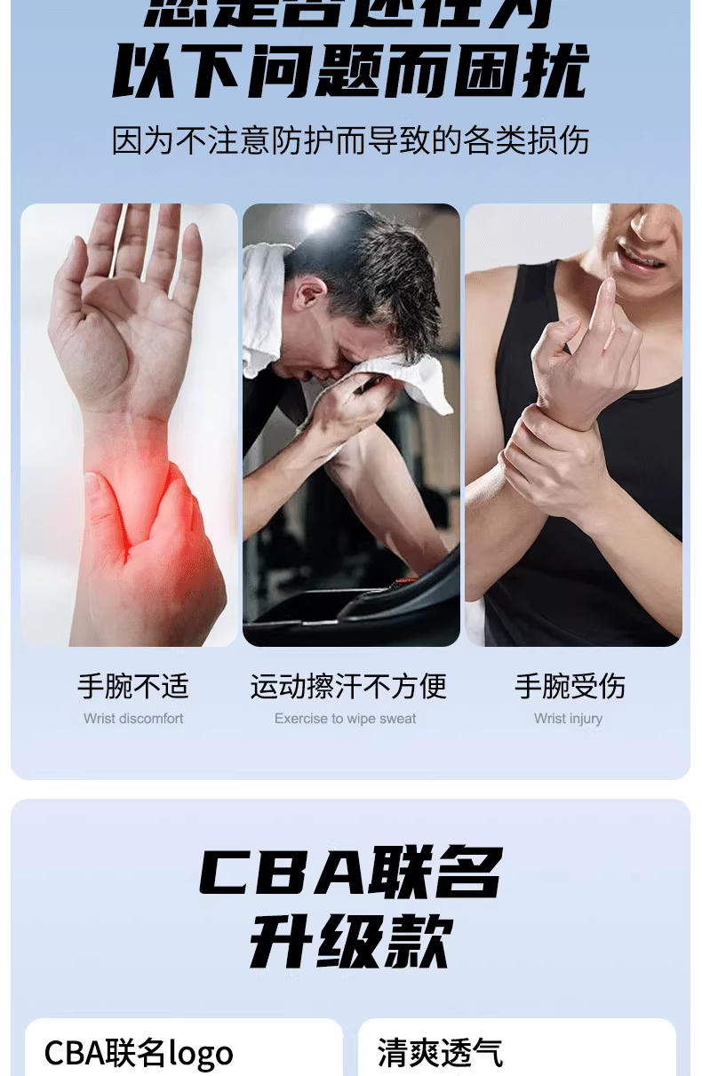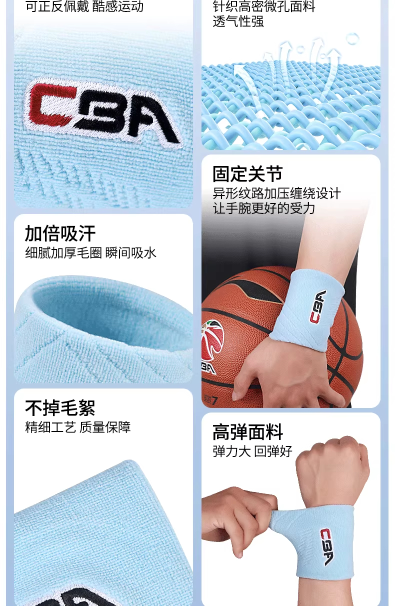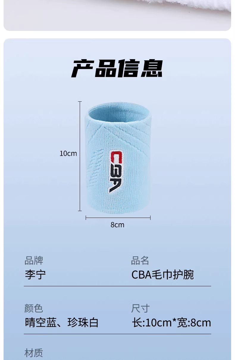 李宁护腕 CBA运动毛巾护腕男擦汗巾跑步专业健身篮球羽毛球吸汗扭伤护手腕 LDEU525 四色可选 CBA联名吸汗护腕,加倍吸汗!