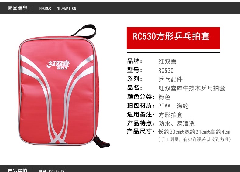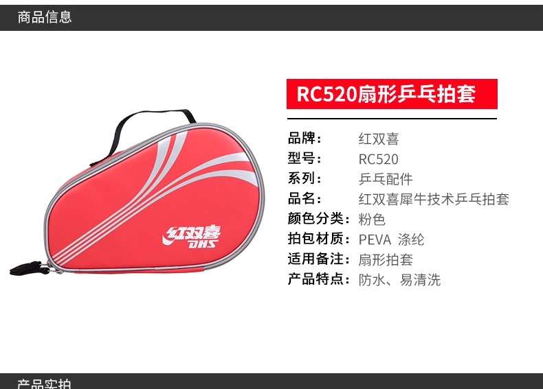 红双喜DHS乒乓球包 RC530 方形拍套 RC520扇形拍套 红色