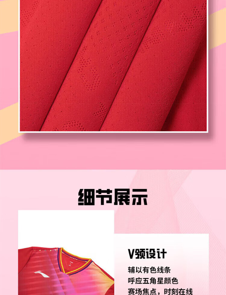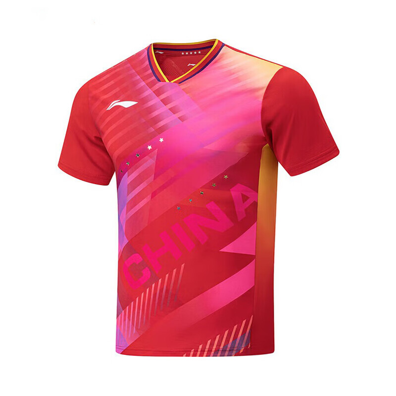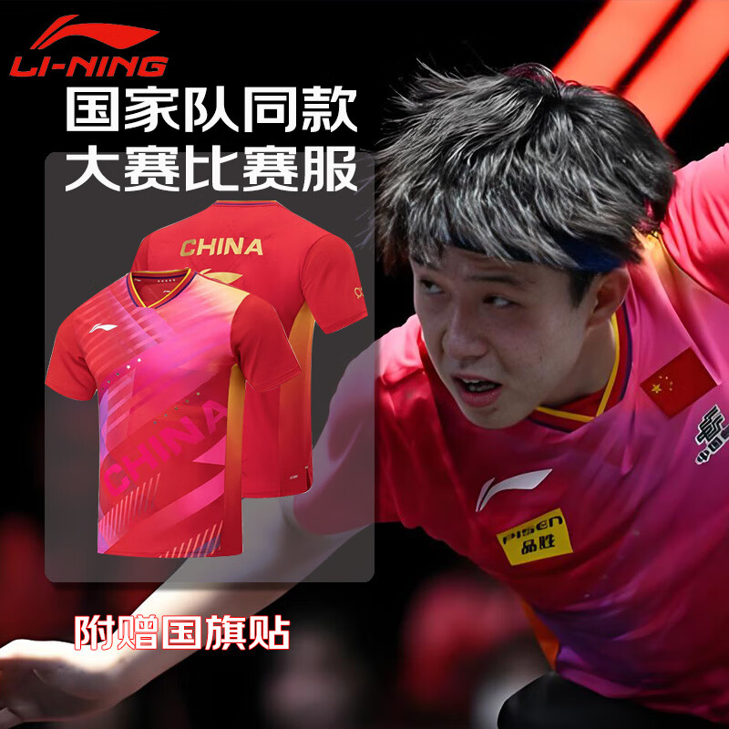 LI-NING李宁 乒乓球服 国家乒乓球队比赛短袖 国旗乒乓球服 男女同款乒乓大赛服装 AAYU037-3 赤樱红