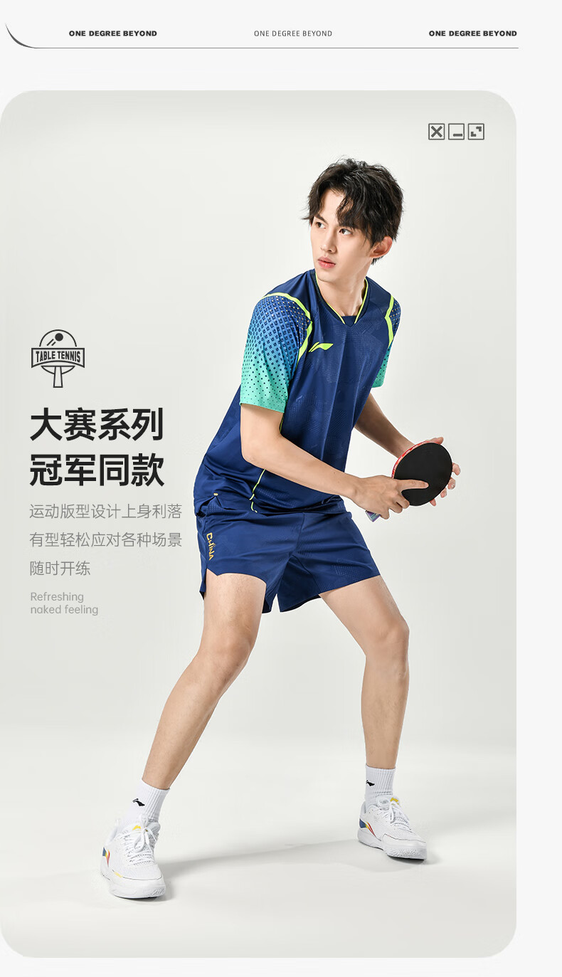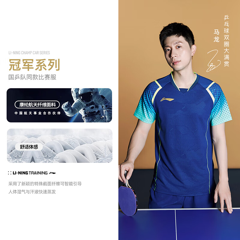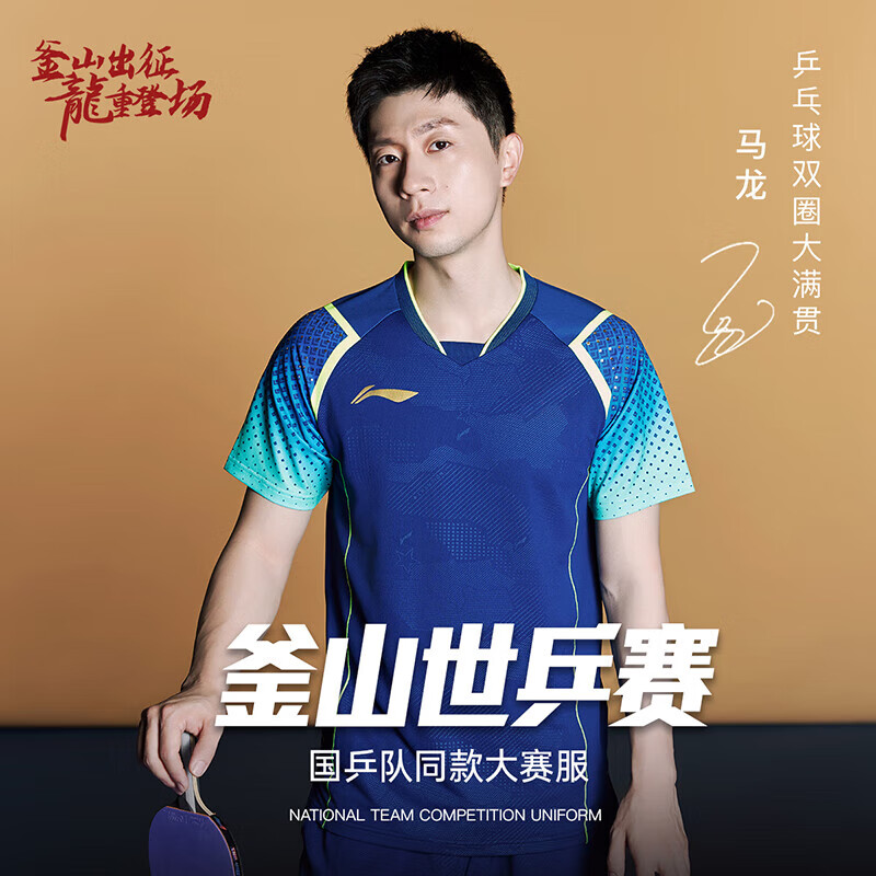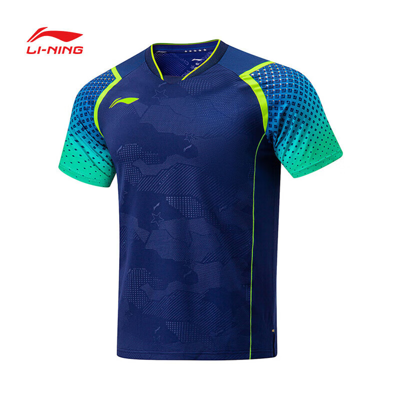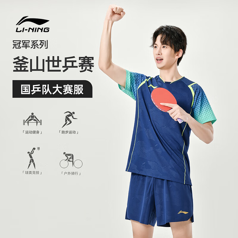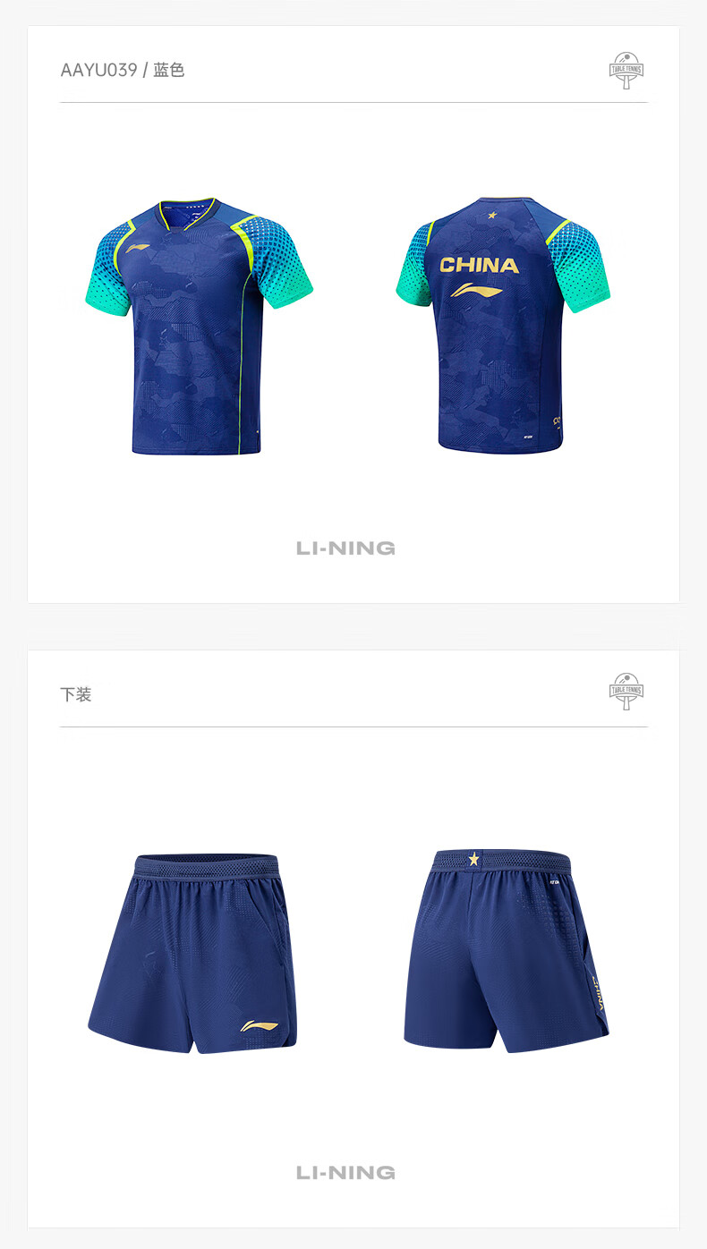 LI-NING李宁 乒乓球服 国家乒乓球队比赛短袖 国旗乒乓球服 男女同款乒乓大赛服装 AAYU039-3 蓝色 清仓特惠,原价499元,现仅需225元,售完无补!