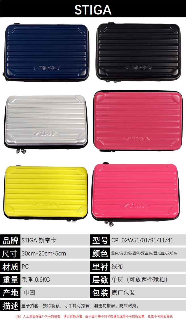 STIGA斯帝卡 乒乓球拍套 方形硬壳包 硬质收纳包 大容量乒乓底板收纳盒 6色可选 本品参加11.11提前购满129减20 299减50 499减80 999减150 1299减200元大促!