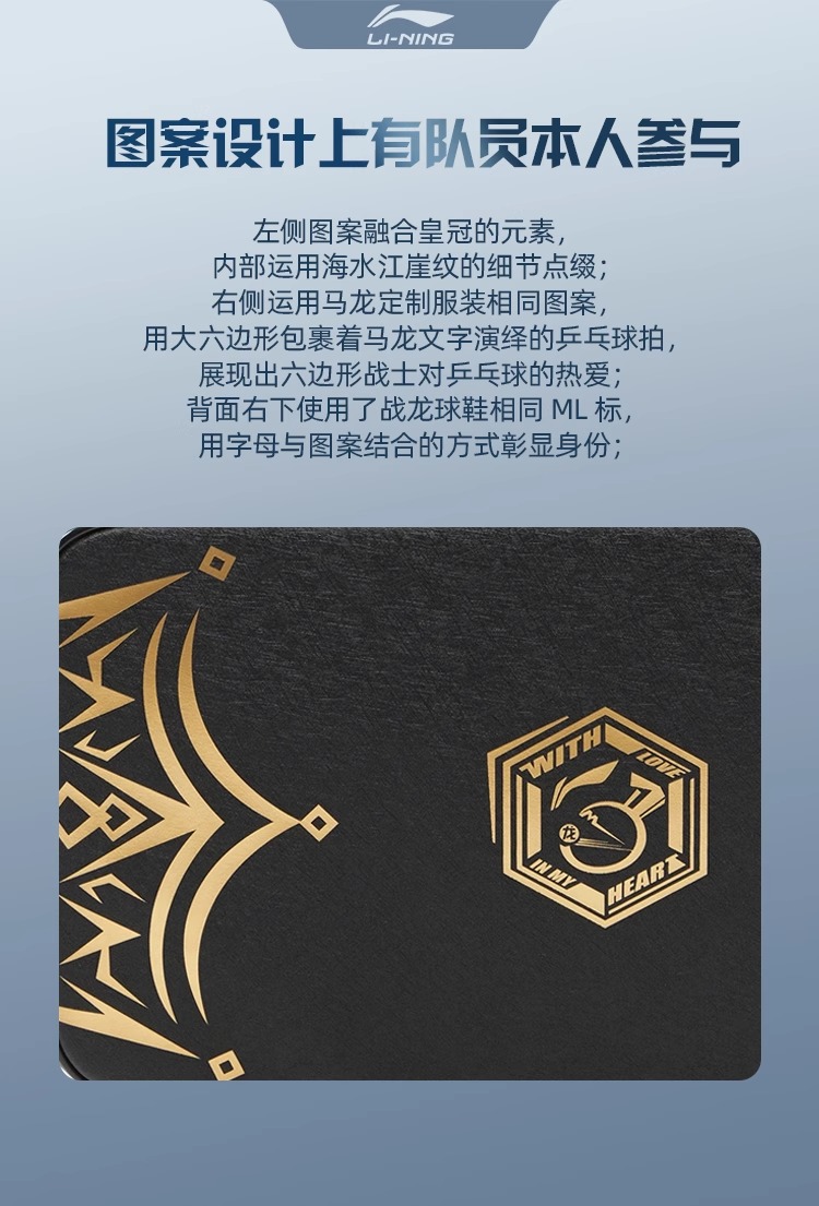 用大六边形包裹着马龙文字演绎的乒乓球拍
