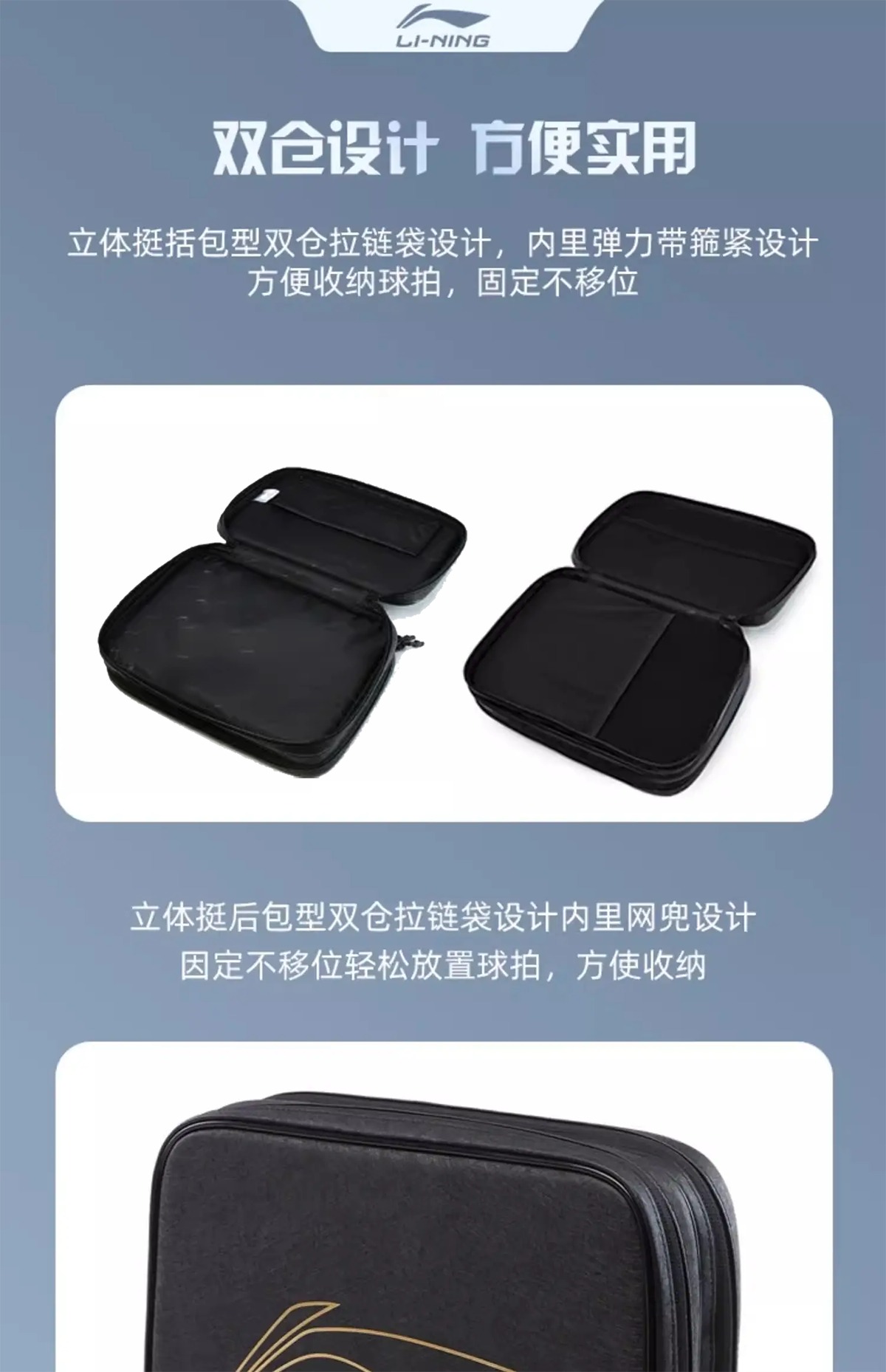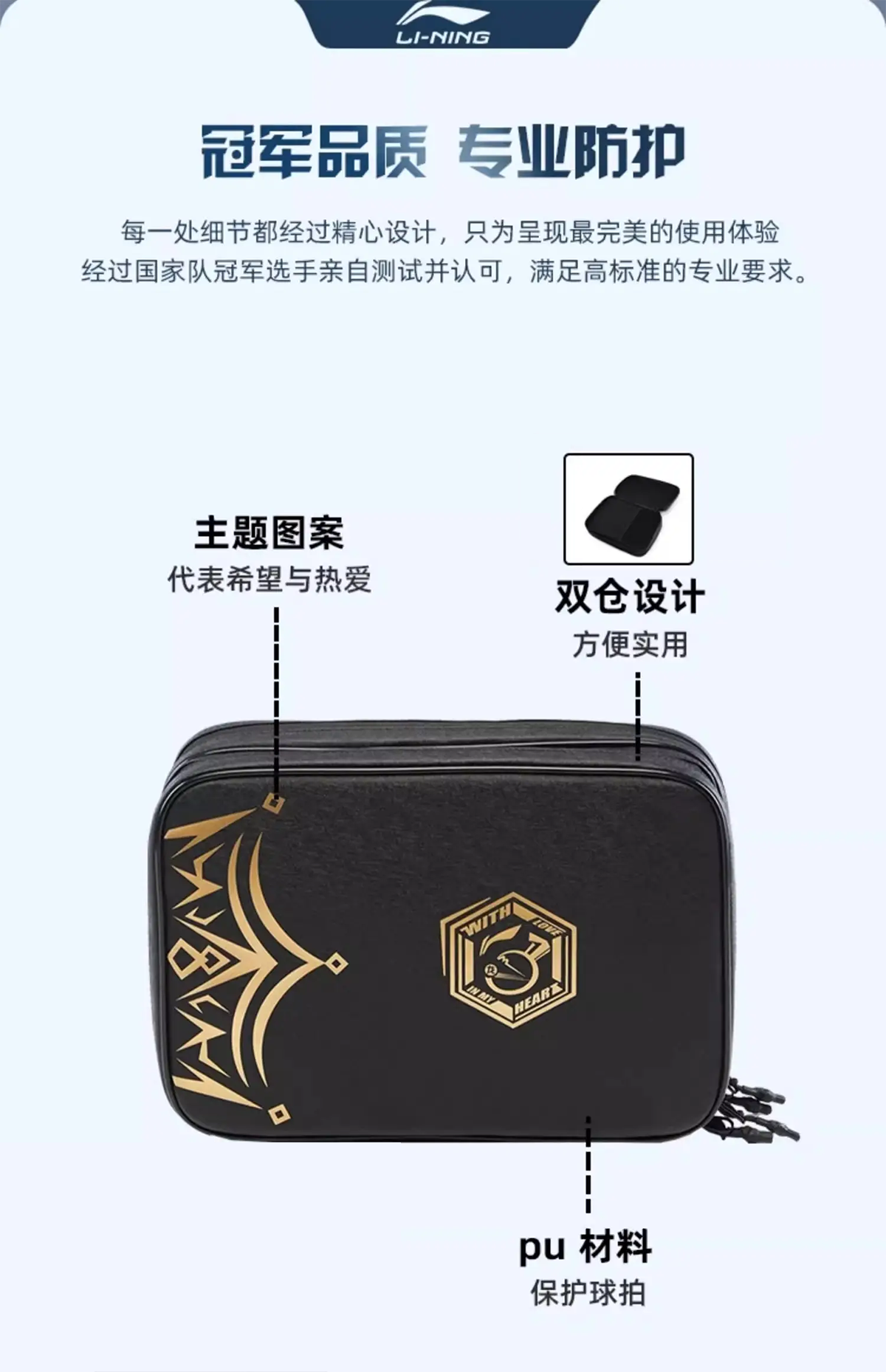 LINING李宁 乒乓球拍套 专业方形拍包 马龙同款乒乓球拍子收纳包 双层可放两支球拍