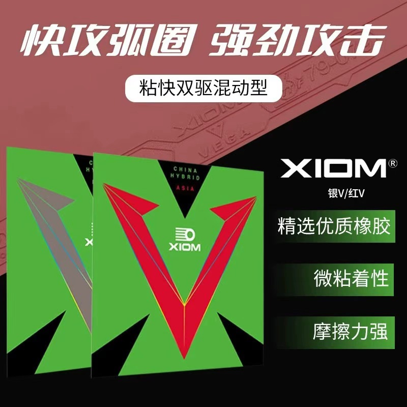 XIOM骄猛 乒乓球胶皮 红V双驱 反胶粘性德系高能碳素套胶 VEGA ASIA H 24年新品!