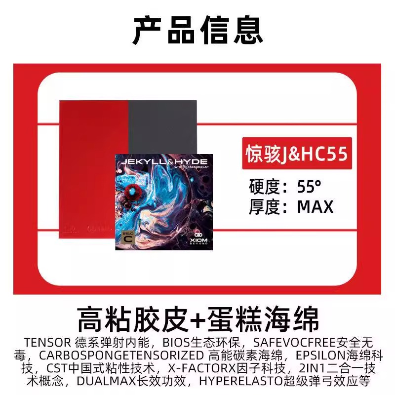XIOM骄猛 乒乓球胶皮 惊骇 反胶粘性德系内能高密度蛋糕海绵套胶 惊骇C55 24年新品!