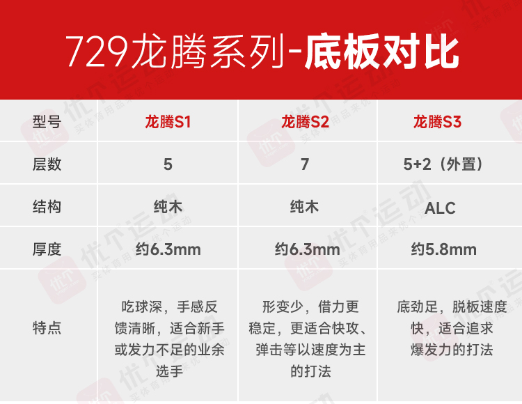 友谊729 乒乓球底板 729龙腾S3 5+2外置纤维乒乓球拍 青少年推荐乒乓底板