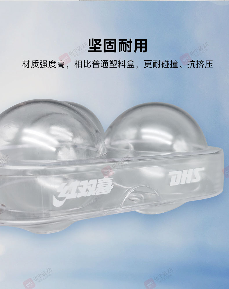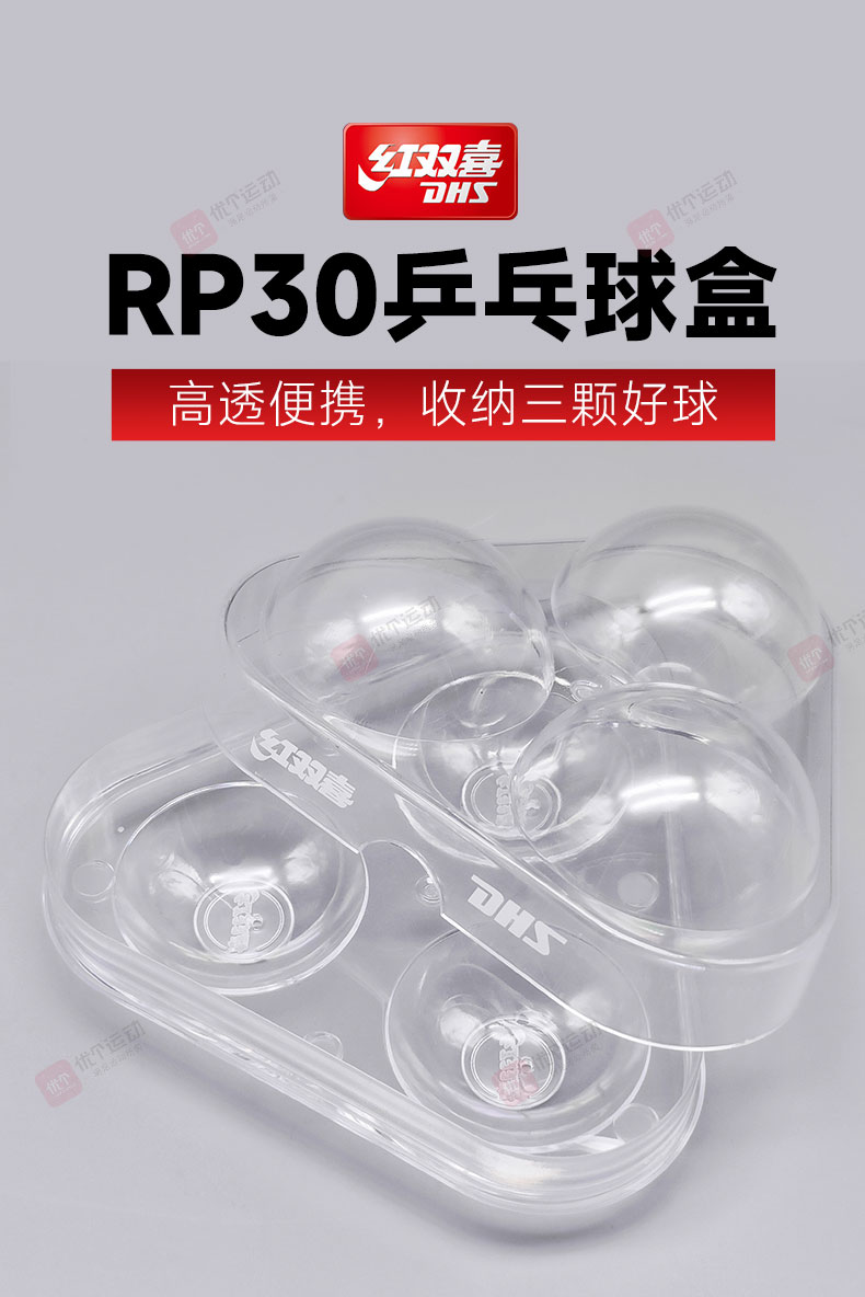 DHS红双喜 乒乓球盒 乒乓球透明亚克力收纳盒 便携乒乓球展示盒 可装3颗40+乒乓球 RP30