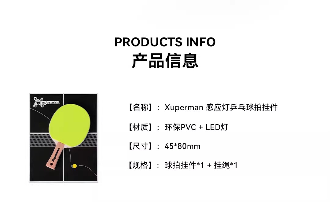 Xuperman 乒乓球拍亮灯挂件 许昕推荐 迷你挂饰 创意运动风挂件 250409 绿色