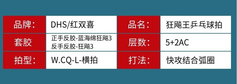 DHS红双喜 乒乓球成品拍 狂飚王新款国手王楚钦乒乓球拍 W.CQ-S内置芳碳纤维进攻乒乓球拍