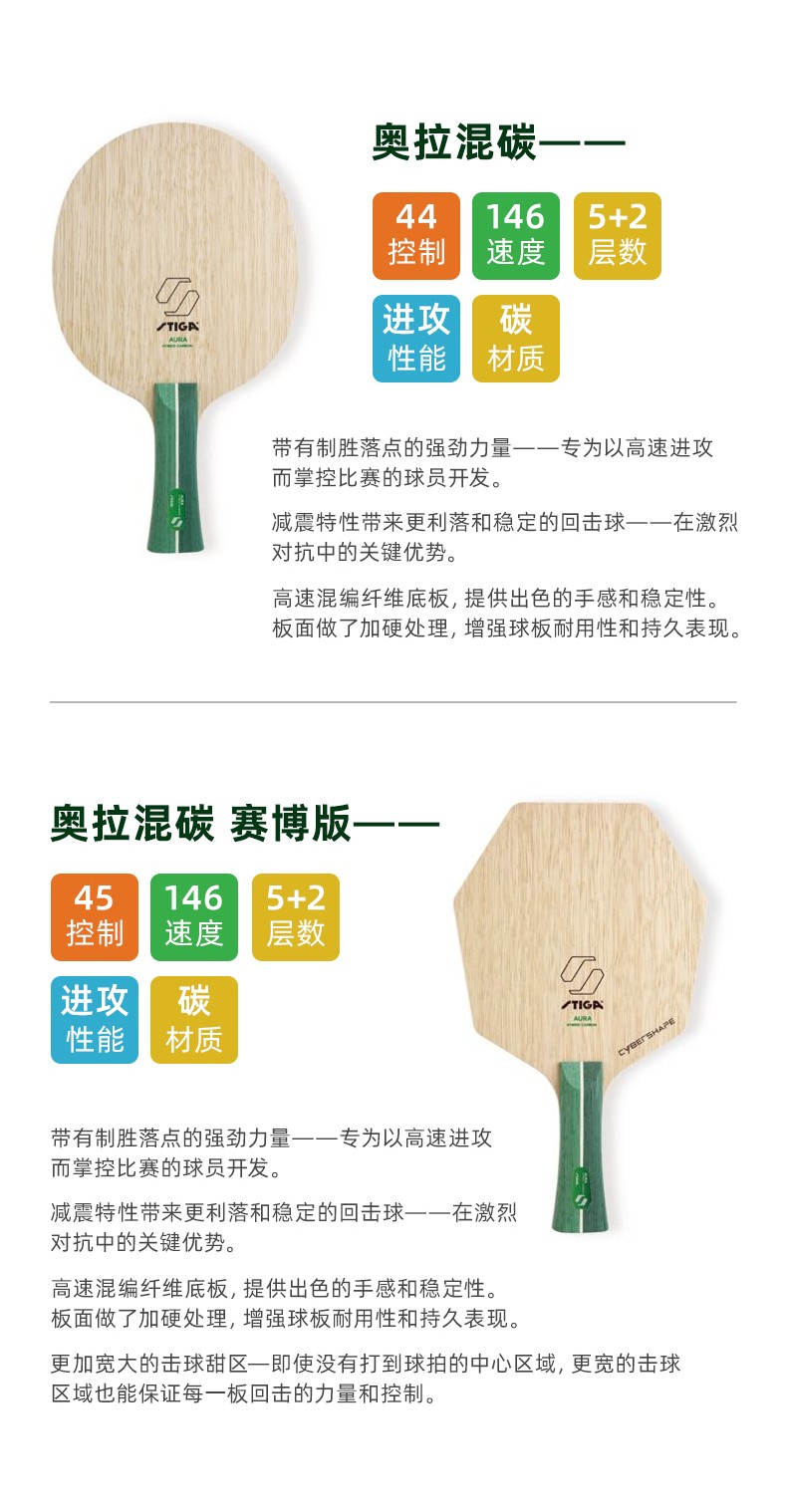 STIGA斯帝卡 乒乓球底板 奥拉混碳系列底板 5+2层结构 外置型 适合快节奏进攻型打法选手