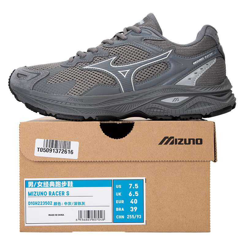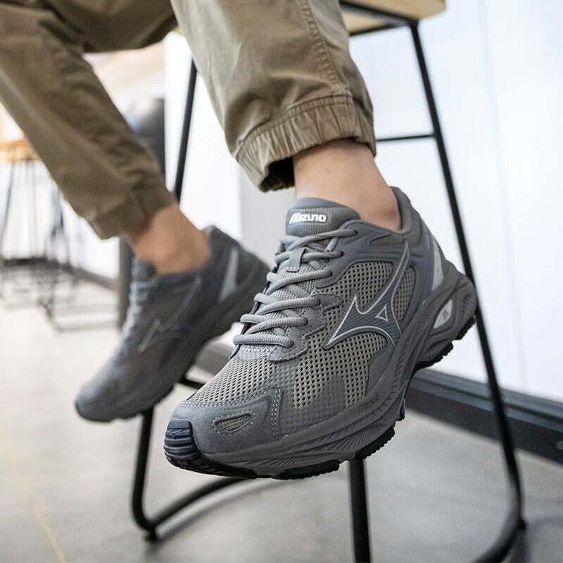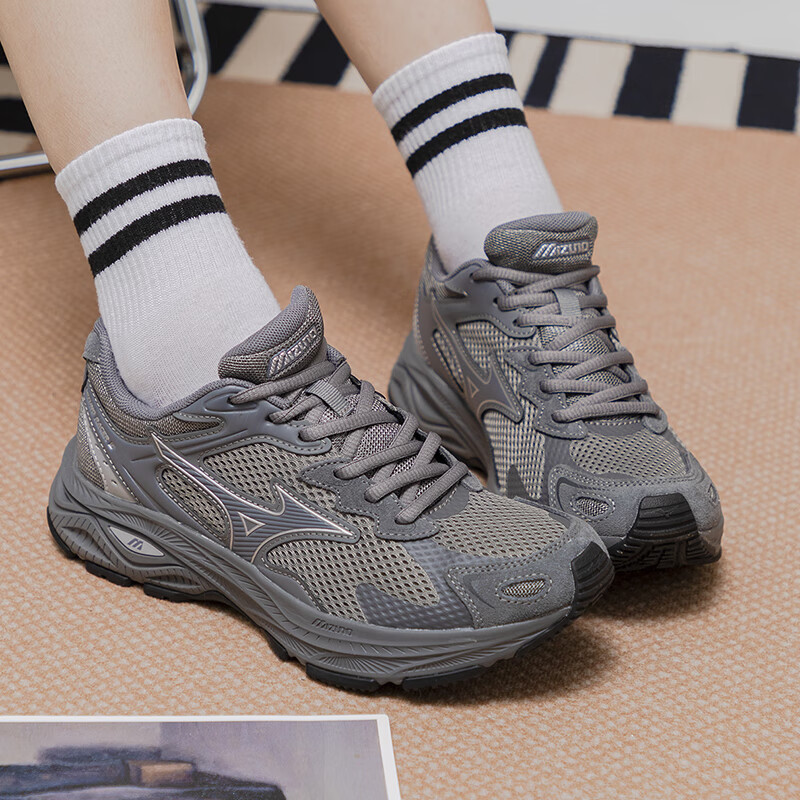 MIZUNO美津浓 中性跑步鞋 25春夏新款老爹鞋 男女复古跑步运动鞋 网面透气休闲跑鞋 D1GH2235-02 中灰/深铁灰