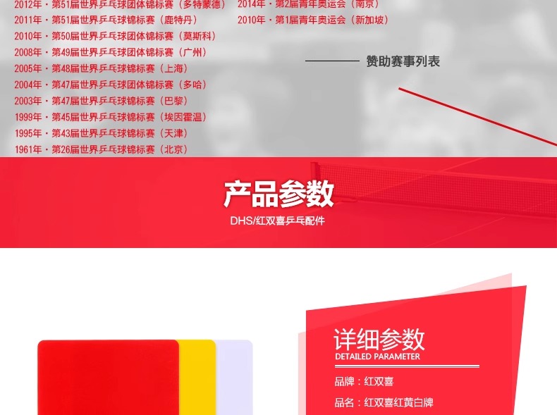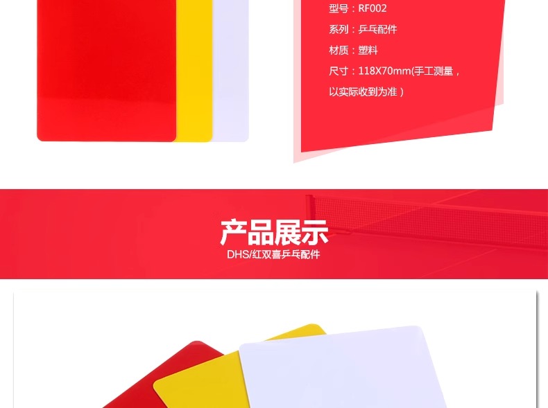 DHS红双喜 乒乓红黄白牌 乒乓球比赛裁判用 裁判工具配件 每套4片 RF002