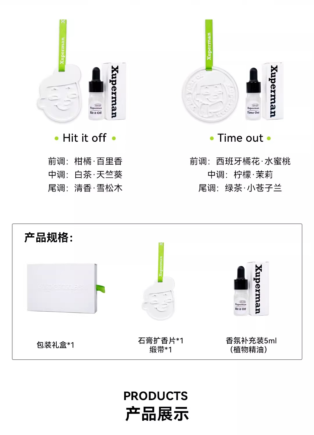 Xuperman 香薰套装卡通款 许昕推荐 石膏香薰片 女生男士衣服留香石膏 香薰挂件