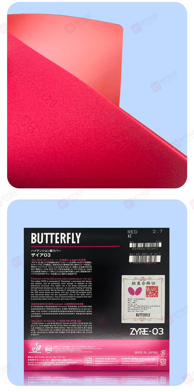 蝴蝶新品ZYRE套胶(蝴蝶Z03)