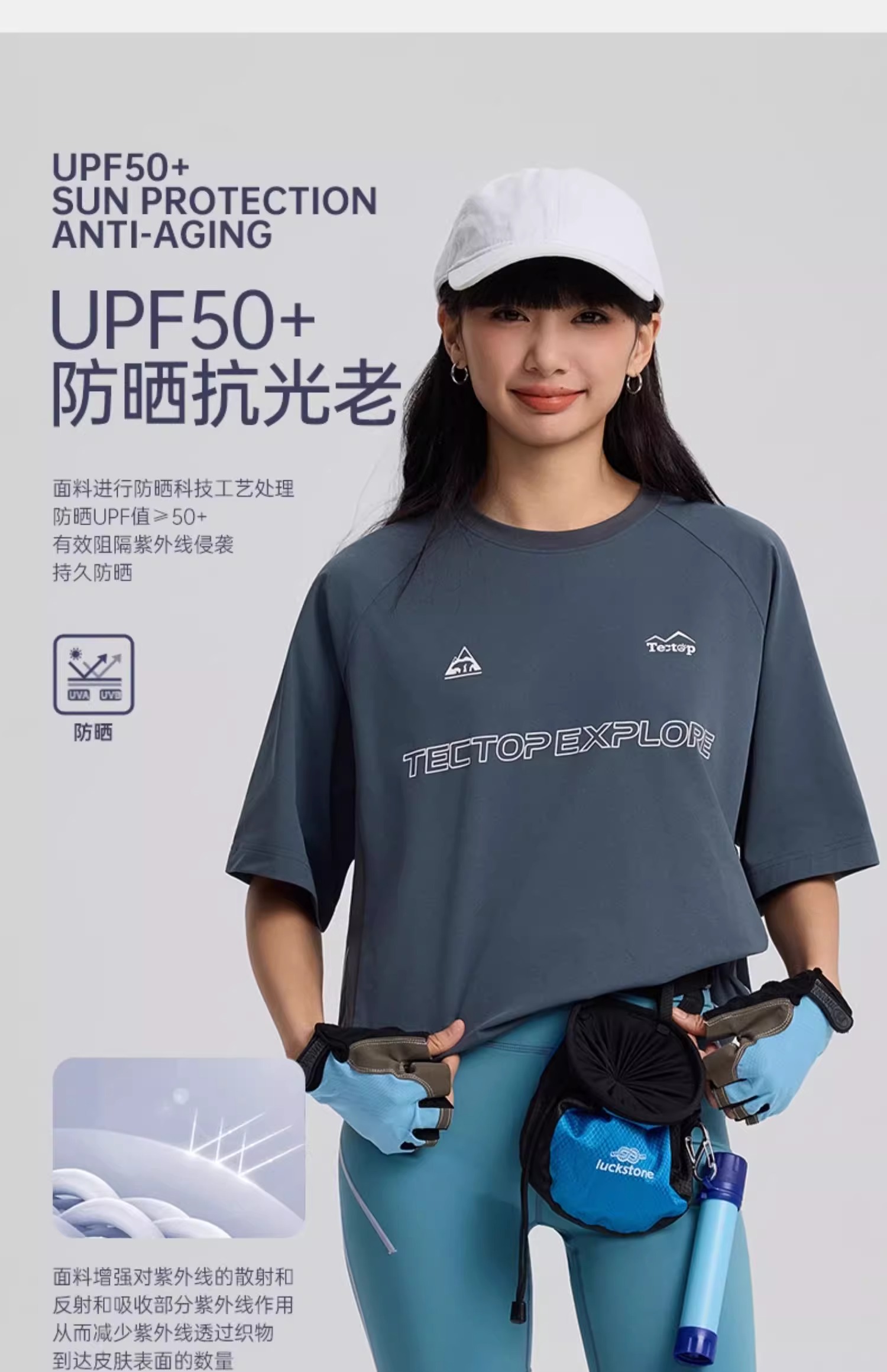 主要功能:吸汗 速干 防紫外线 超轻 透气 耐磨
