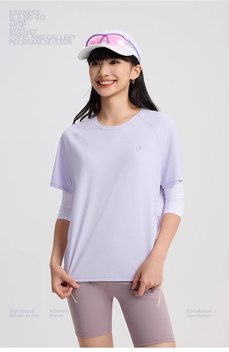 TECTOP探拓户外运动速干短袖T恤女士夏季收腰透气轻薄跑步训练服 芋灰紫 2522024TX-1