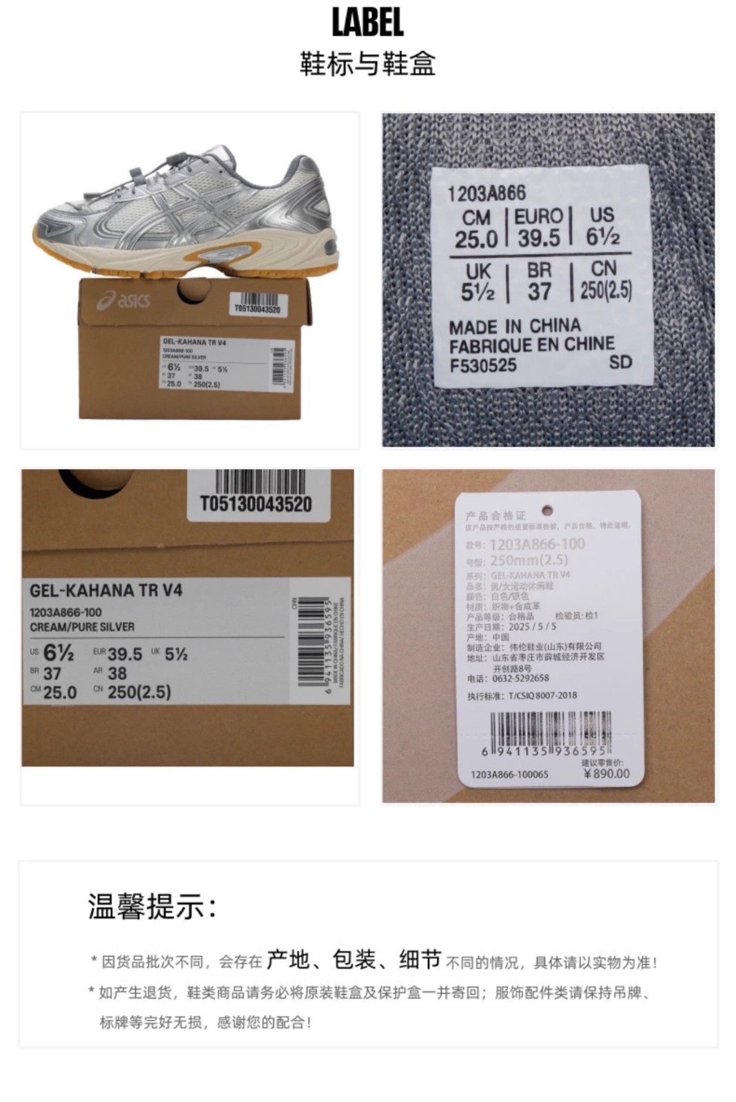 ASICS亚瑟士 中性休闲鞋 25新款GEL-KAHANA TR V4运动休闲鞋 复古老爹鞋 1203A866-100 白色/银色