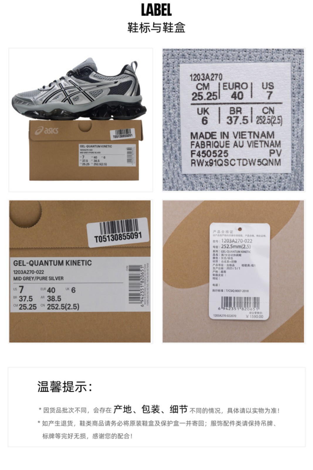 ASICS亚瑟士 中性休闲鞋 QUANTUM KINETIC GEL春夏百搭休闲鞋 男女跑步休闲运动鞋 1203A270-022 灰色/银色