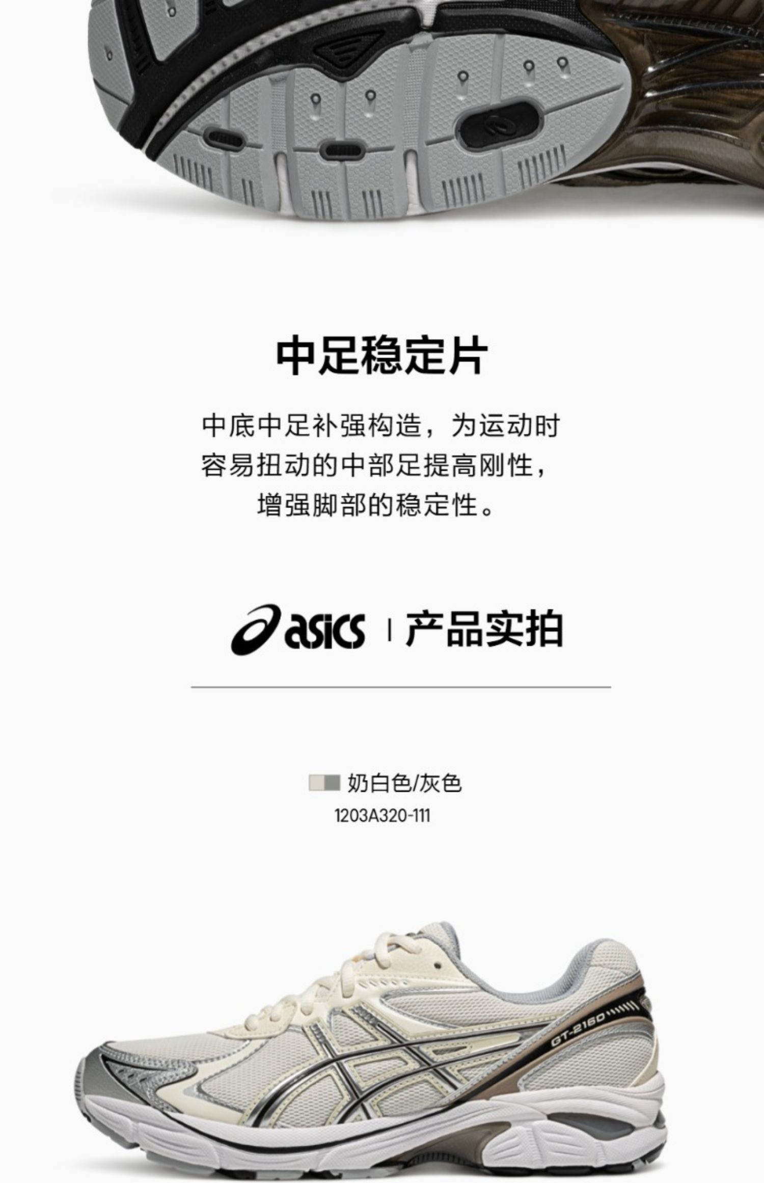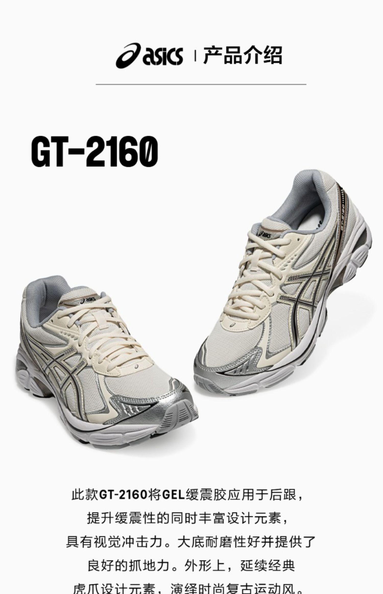 ASICS亚瑟士 中性休闲鞋 GT-2160情侣休闲鞋 时尚潮流复古缓震耐磨运动鞋 1203A320-111 奶油/灰色