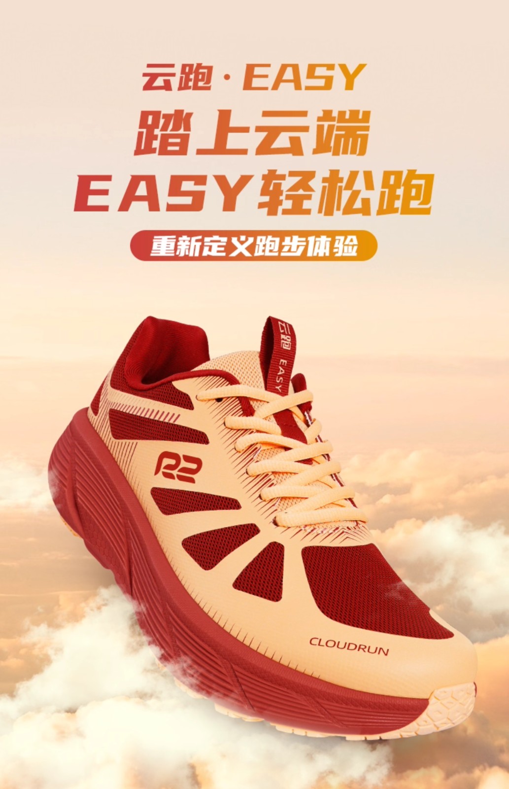 R2 云跑EASY跑步鞋 四季款厚底缓震跑步鞋 专业马拉松跑步鞋 男女款超轻软弹运动跳操跳绳鞋 石榴红/杏黄