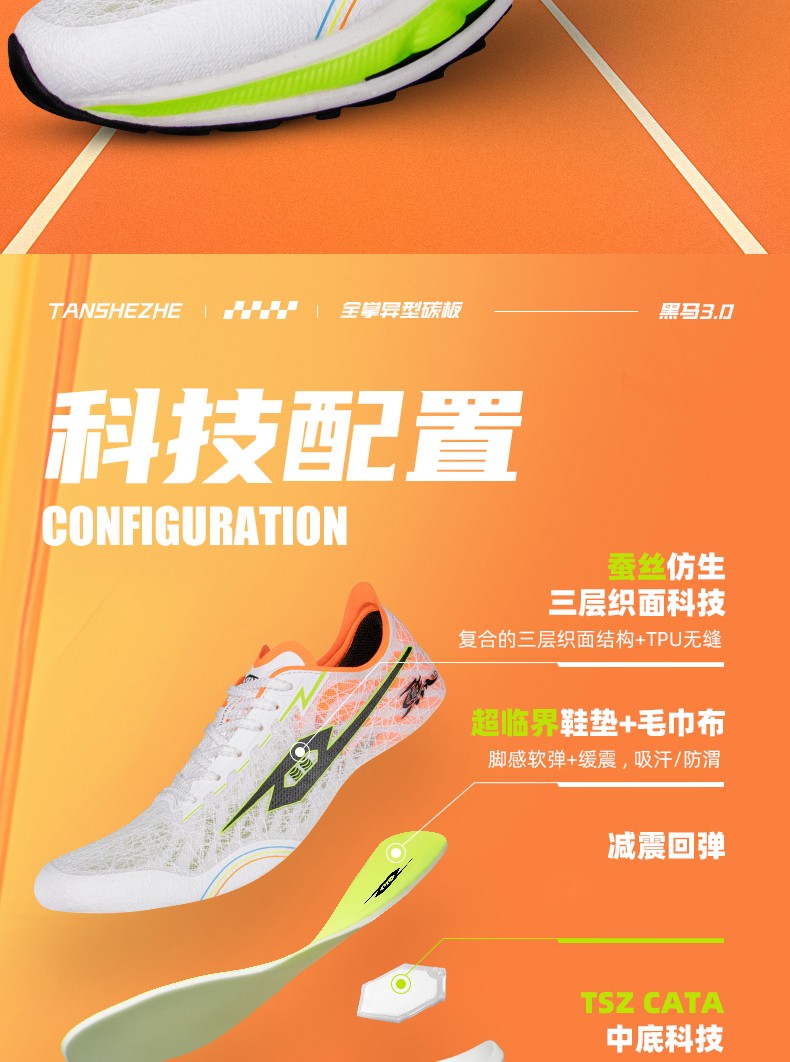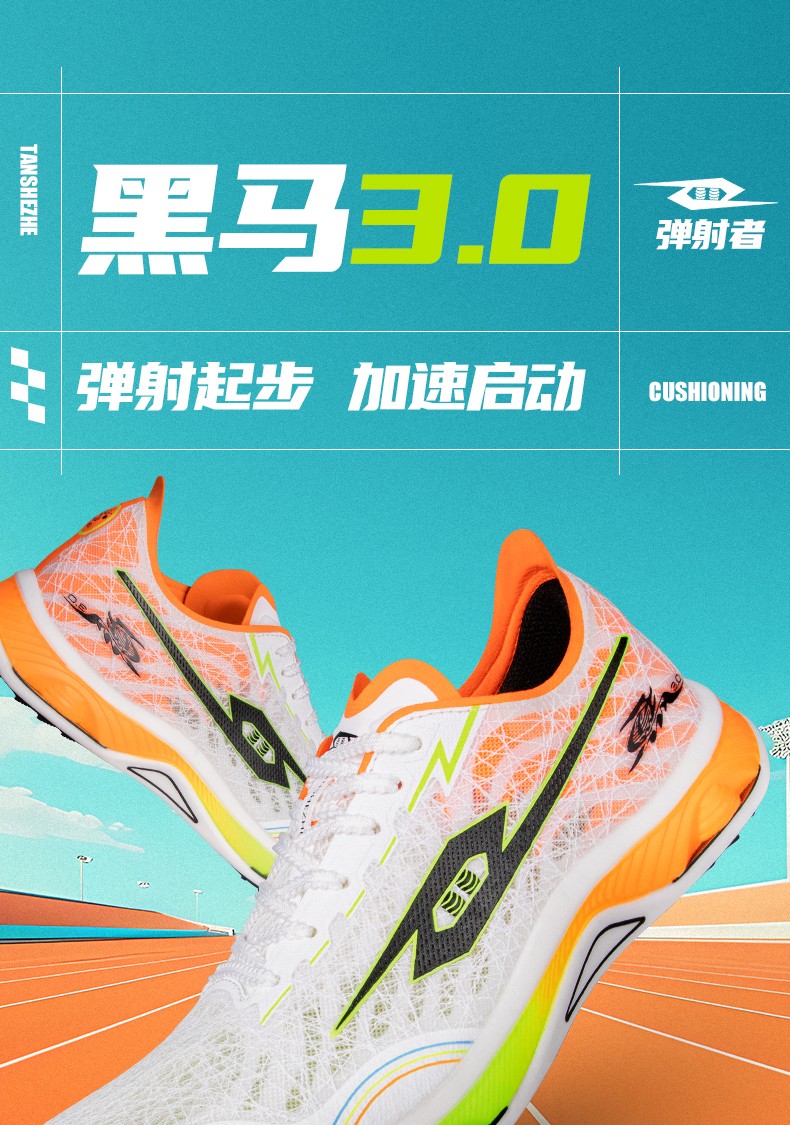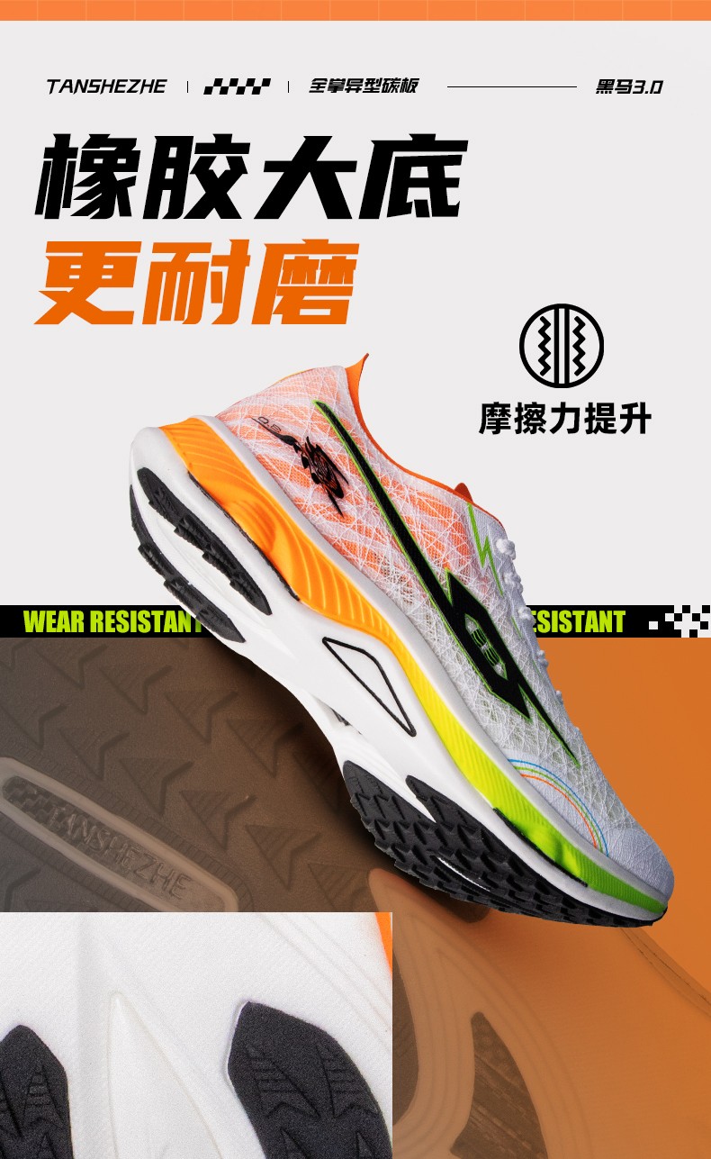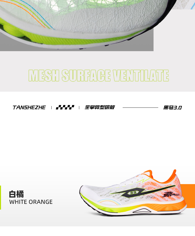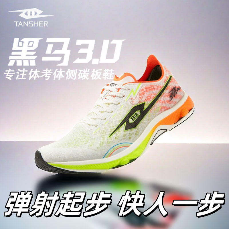 TANSHEZHE弹射者 黑马3.0竞速跑鞋 全掌碳板减震回弹透气男女运动鞋 体考体测专用鞋 白橘
