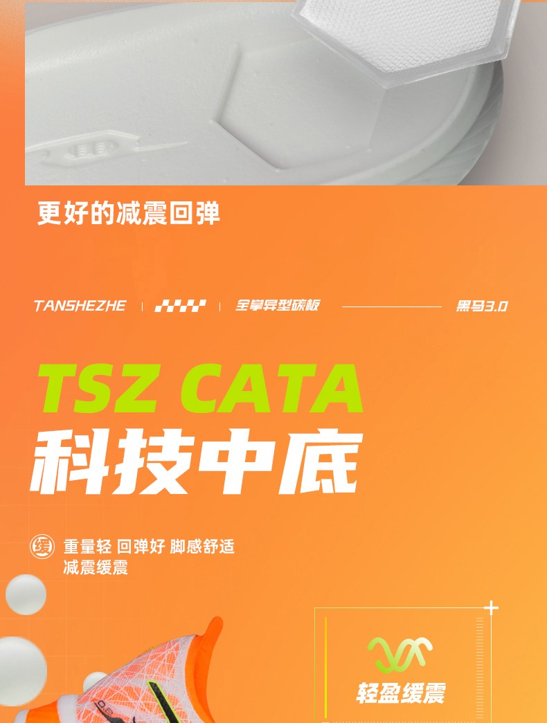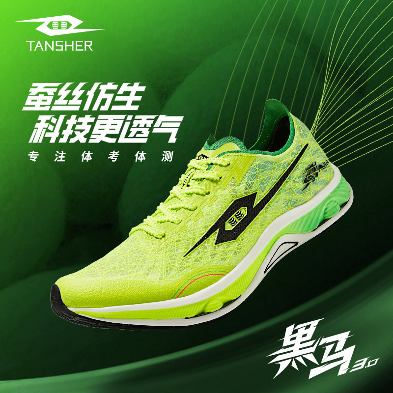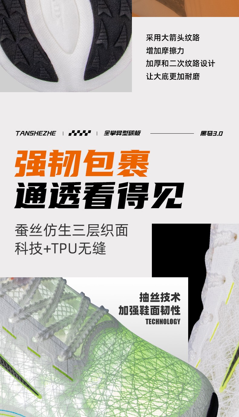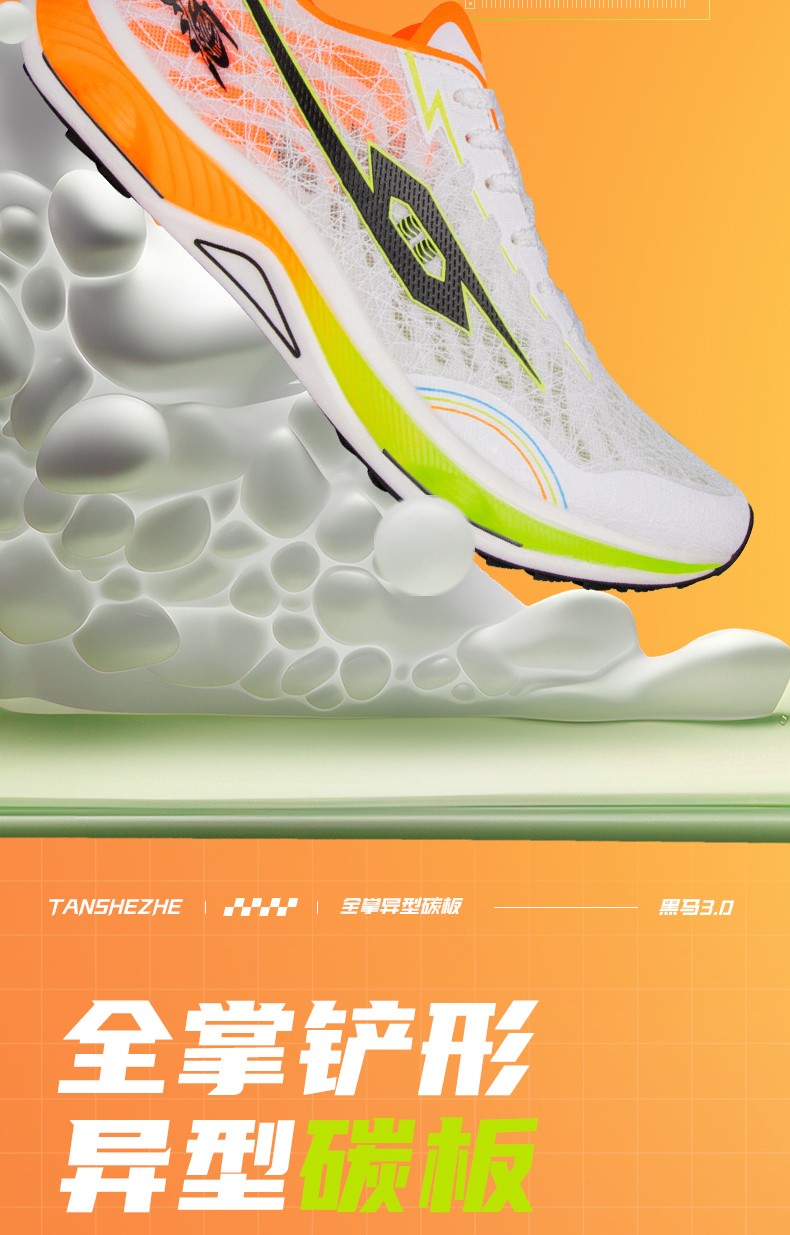 TANSHEZHE弹射者 黑马3.0竞速跑鞋 全掌碳板减震回弹透气男女运动鞋 体考体测专用鞋 白橘