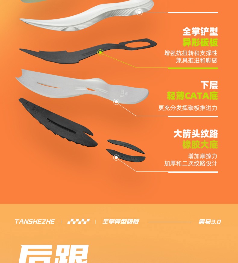 黑马3.0搭载全掌实心碳板