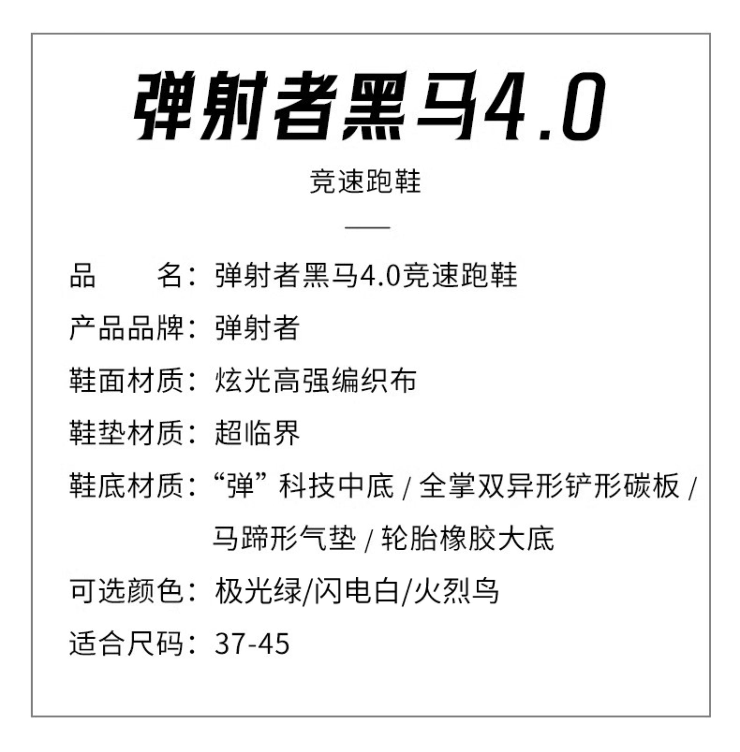 TANSHEZHE弹射者 黑马4.0跑鞋 专业全掌碳板竞速跑鞋 减震男女初中体考专用跑鞋 闪电白