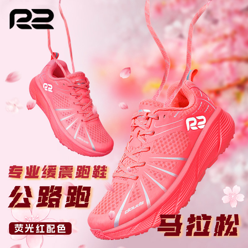R2 云跑CLOUDS跑鞋 马拉松跑鞋 减震专业运动鞋 男女款超轻软弹运动跳操跳绳鞋 夜空黑