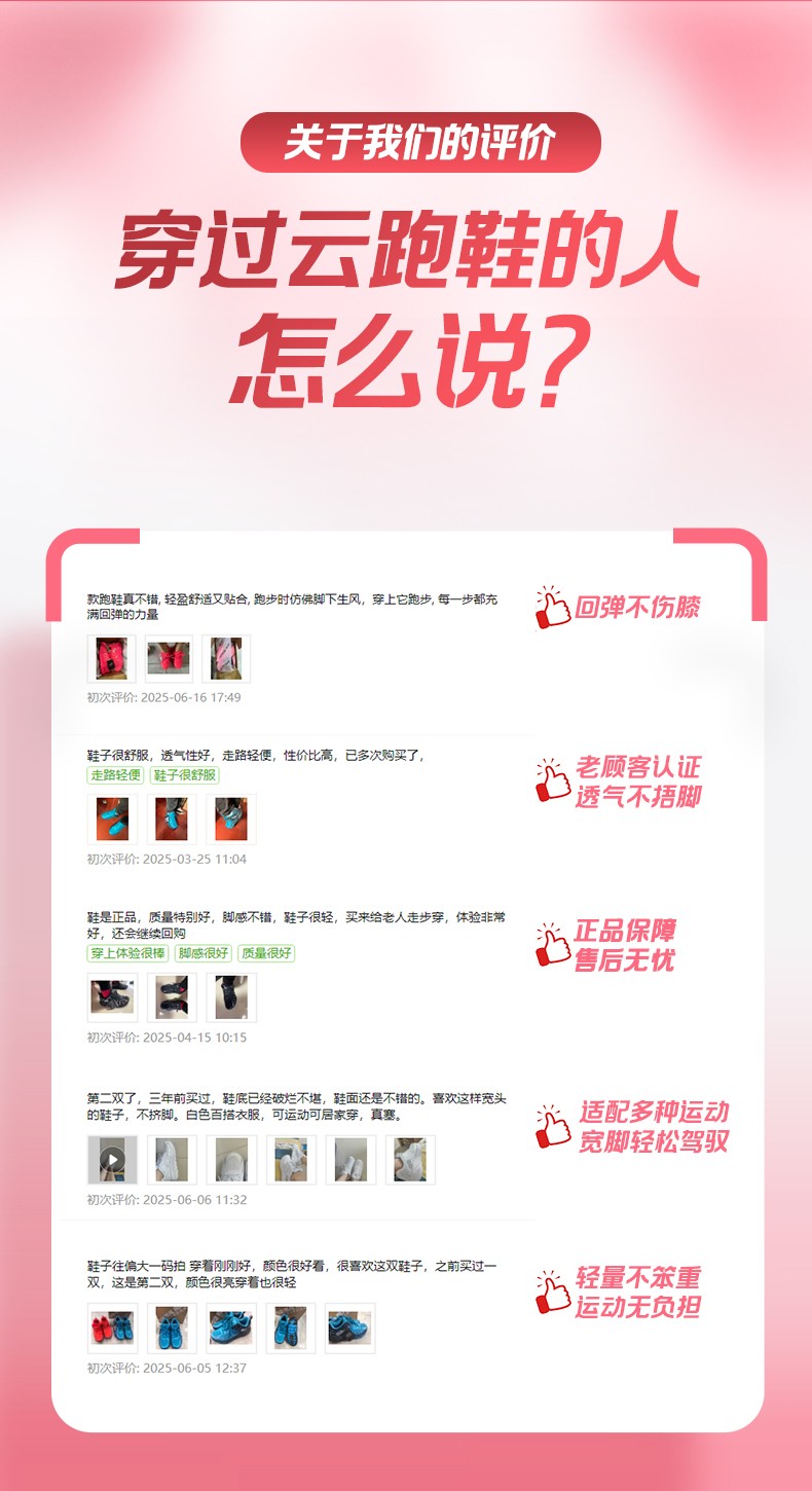 特征:厚底缓震;轻薄透气;防滑耐磨