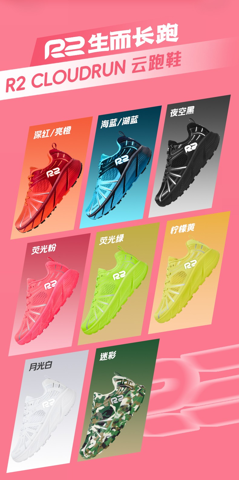 R2 云跑CLOUDS跑鞋 女 马拉松跑鞋 减震专业运动鞋 女款超轻软弹运动跳操跳绳鞋 荧光红