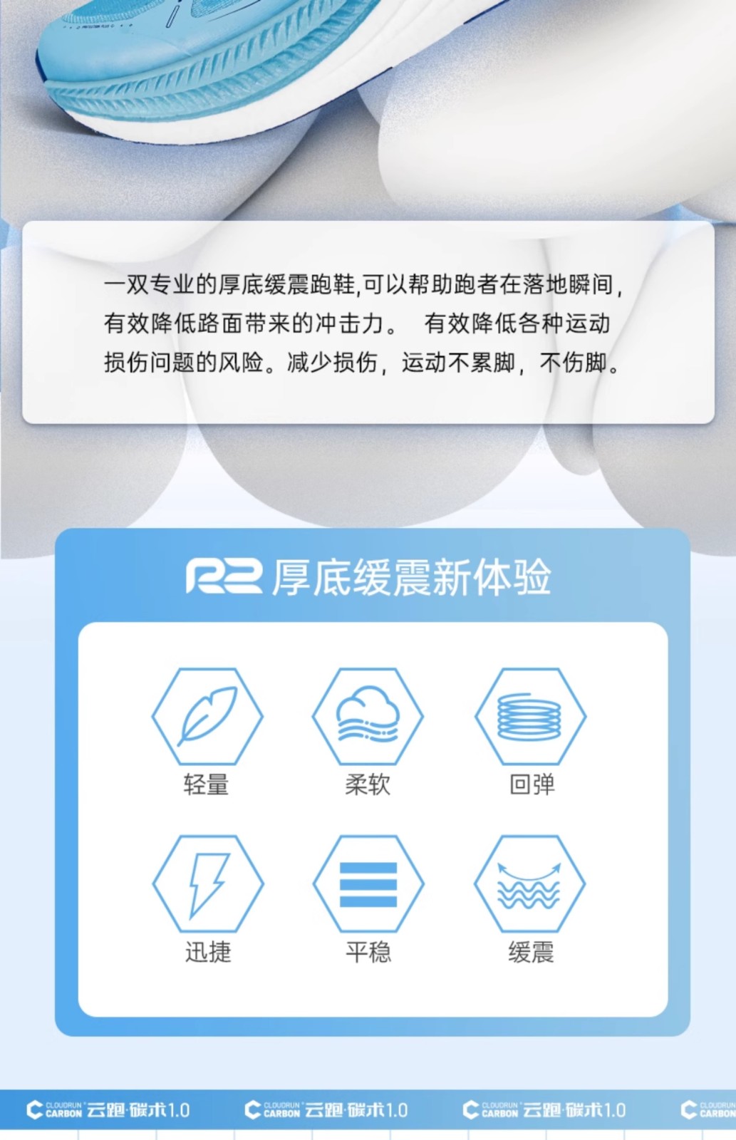 R2 云跑碳术1.0跑鞋 厚底缓震跑鞋 碳板马拉松跑步鞋 男女款超轻运动鞋 月白色/抹茶