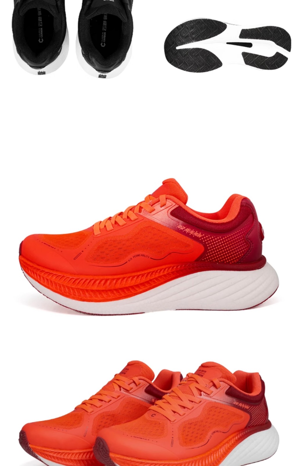 R2 云跑碳术1.0跑鞋 厚底缓震跑鞋 碳板马拉松跑步鞋 男女款超轻运动鞋 亮橙色/酒红