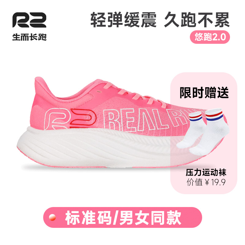 R2 悠跑2.0跑鞋 运动休闲鞋 马拉松跑鞋 秋季轻便缓震回弹透气跑步鞋 软底男鞋 暗夜黑