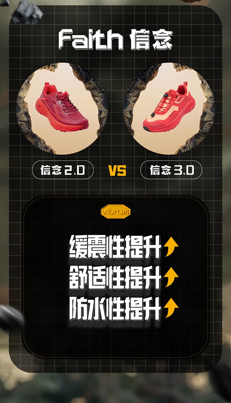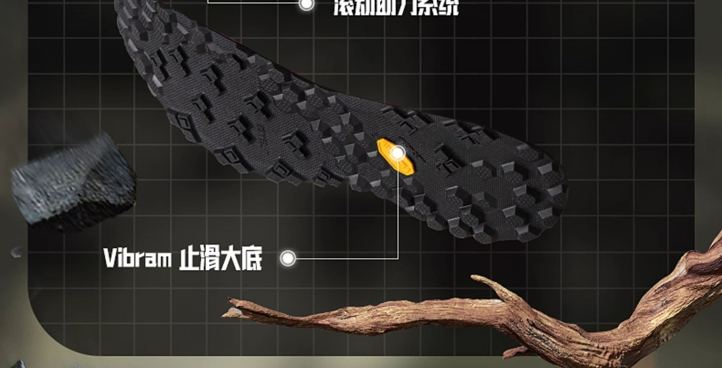 Vibram Litebase大底配棱形与蜂窝纹路