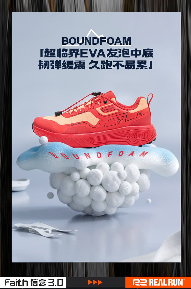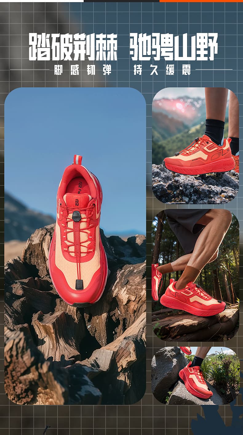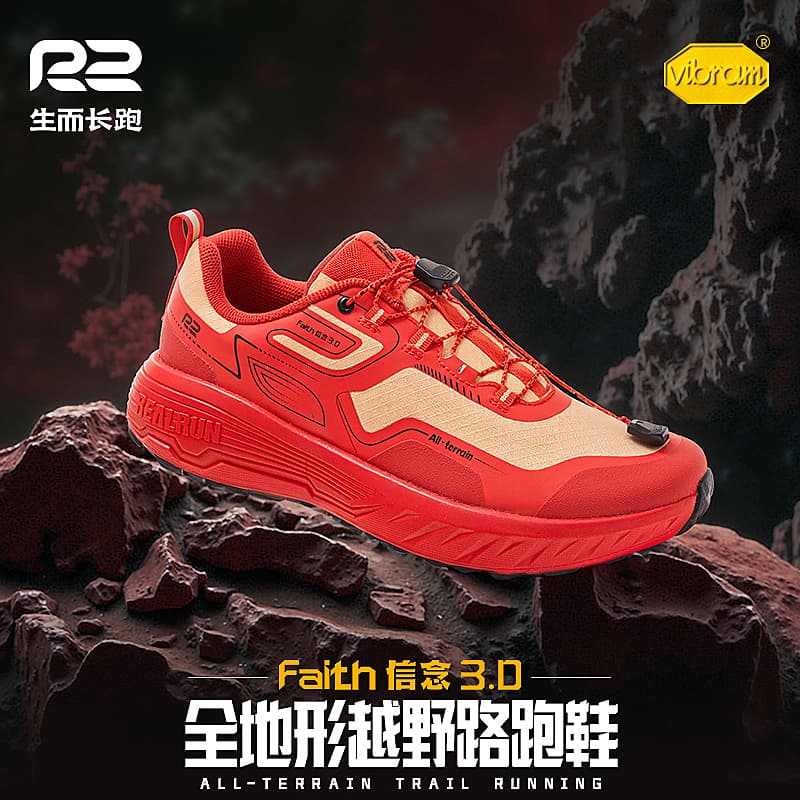 R2 REALRUN 信念3.0越野跑鞋 专业户外徒步登山鞋 秋冬运动鞋男女款防滑耐磨减震鞋 墨黑