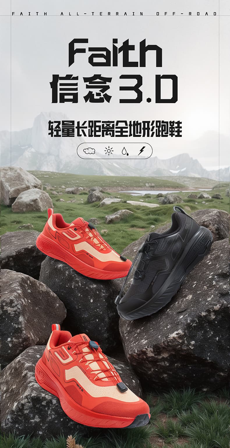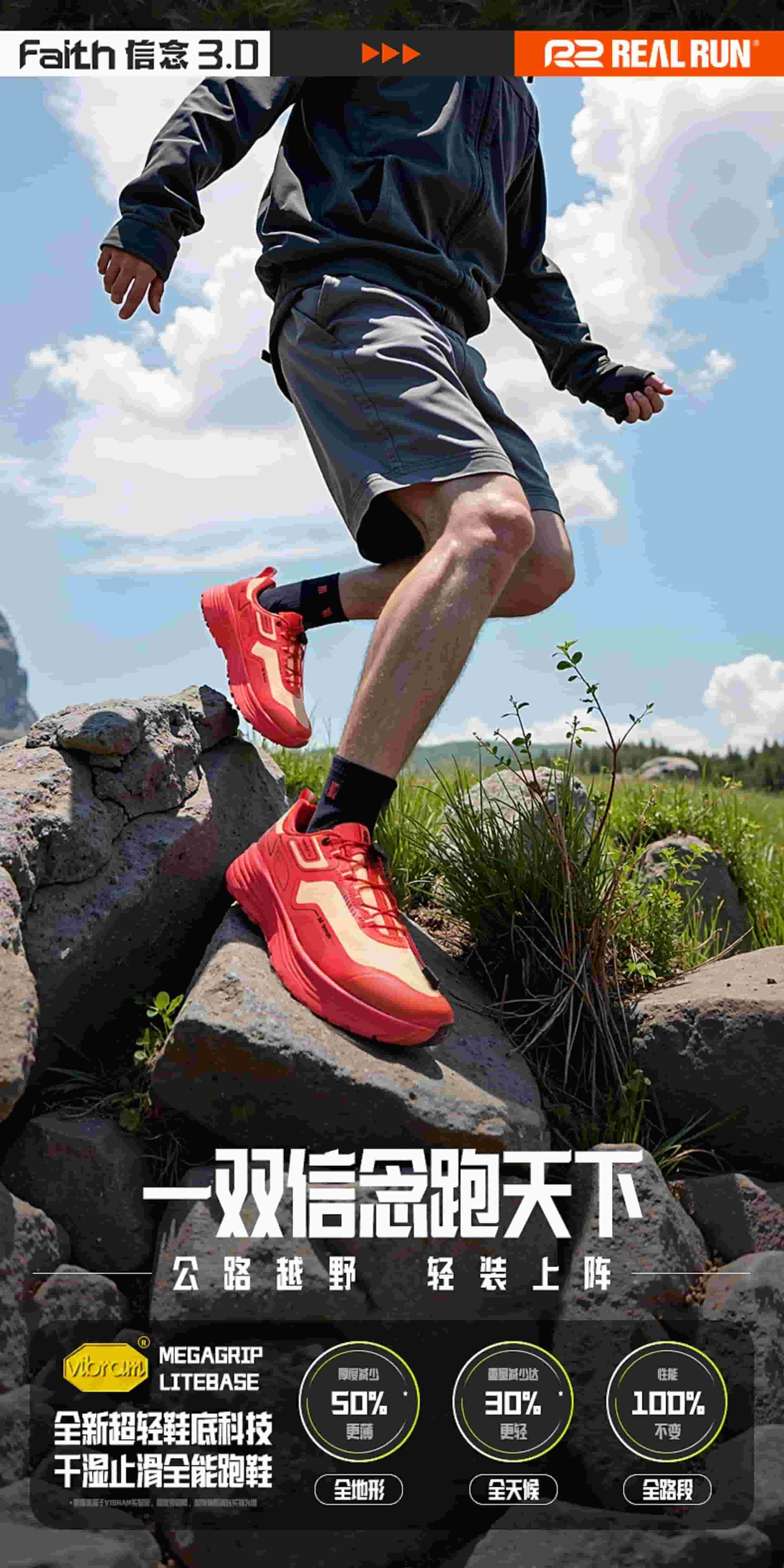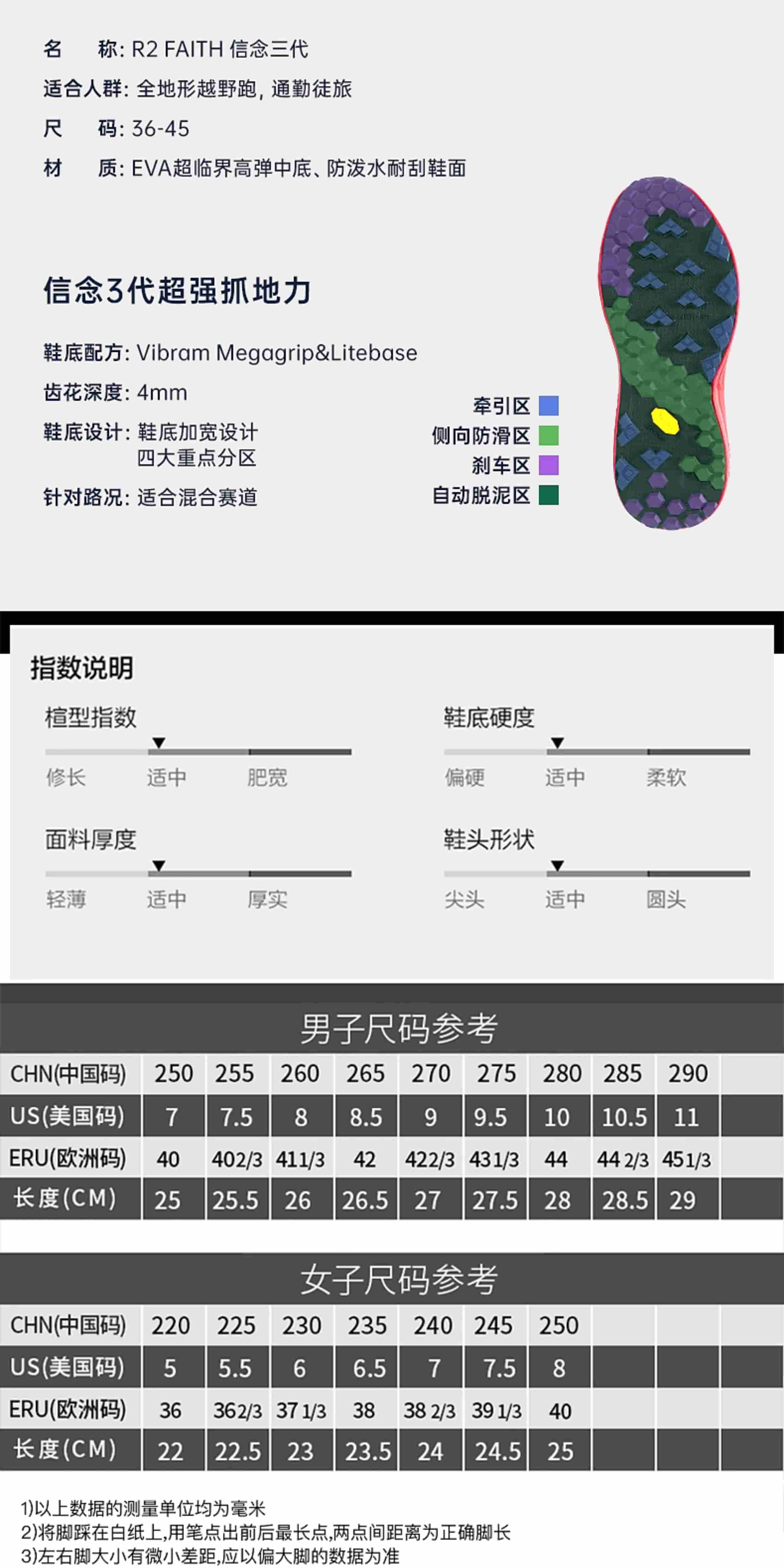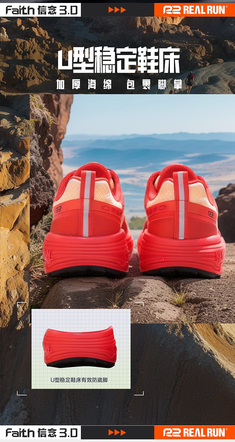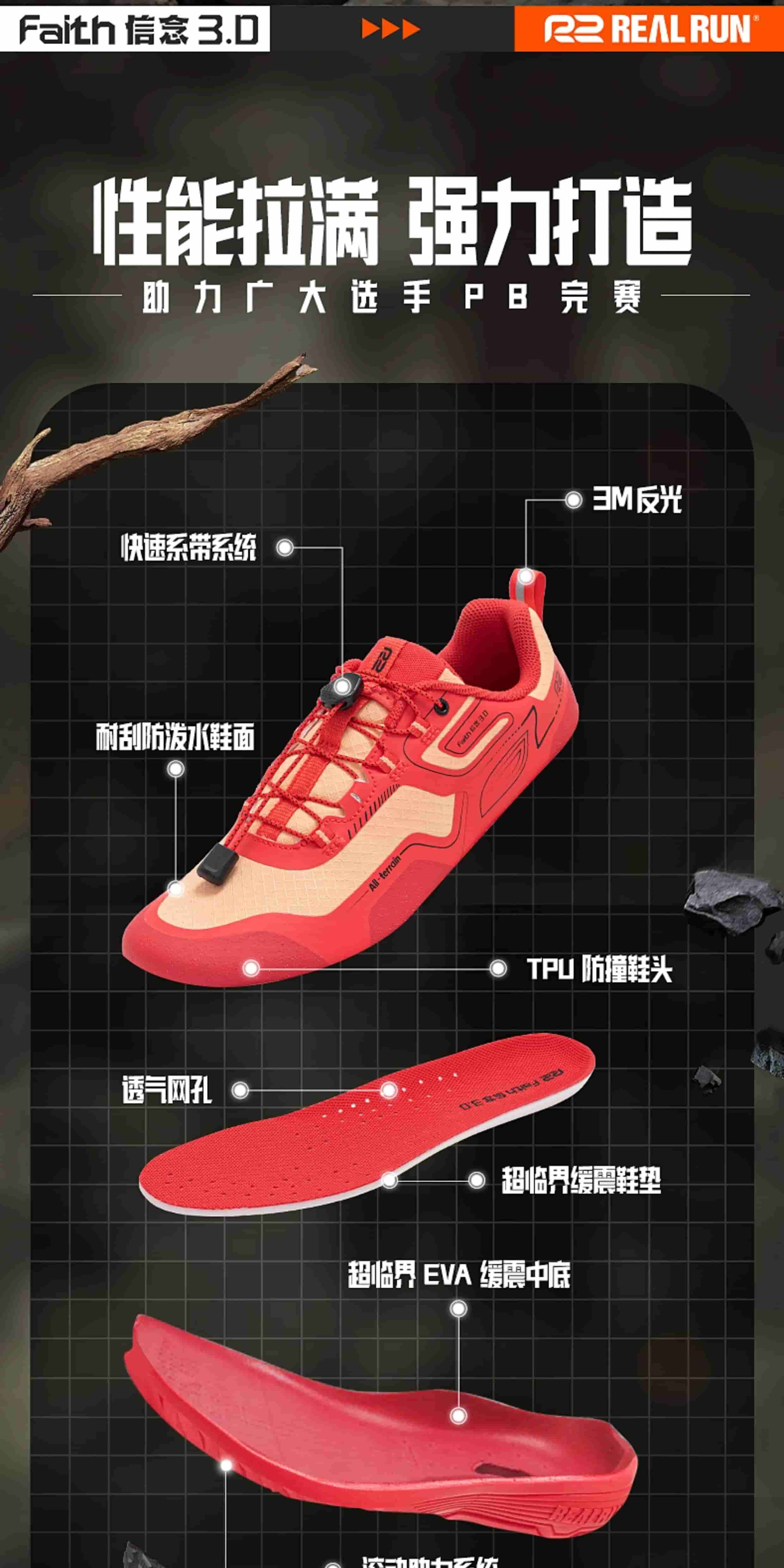 R2 REALRUN 信念3.0越野跑鞋 专业户外徒步登山鞋 秋冬运动鞋男女款防滑耐磨减震鞋 赤红