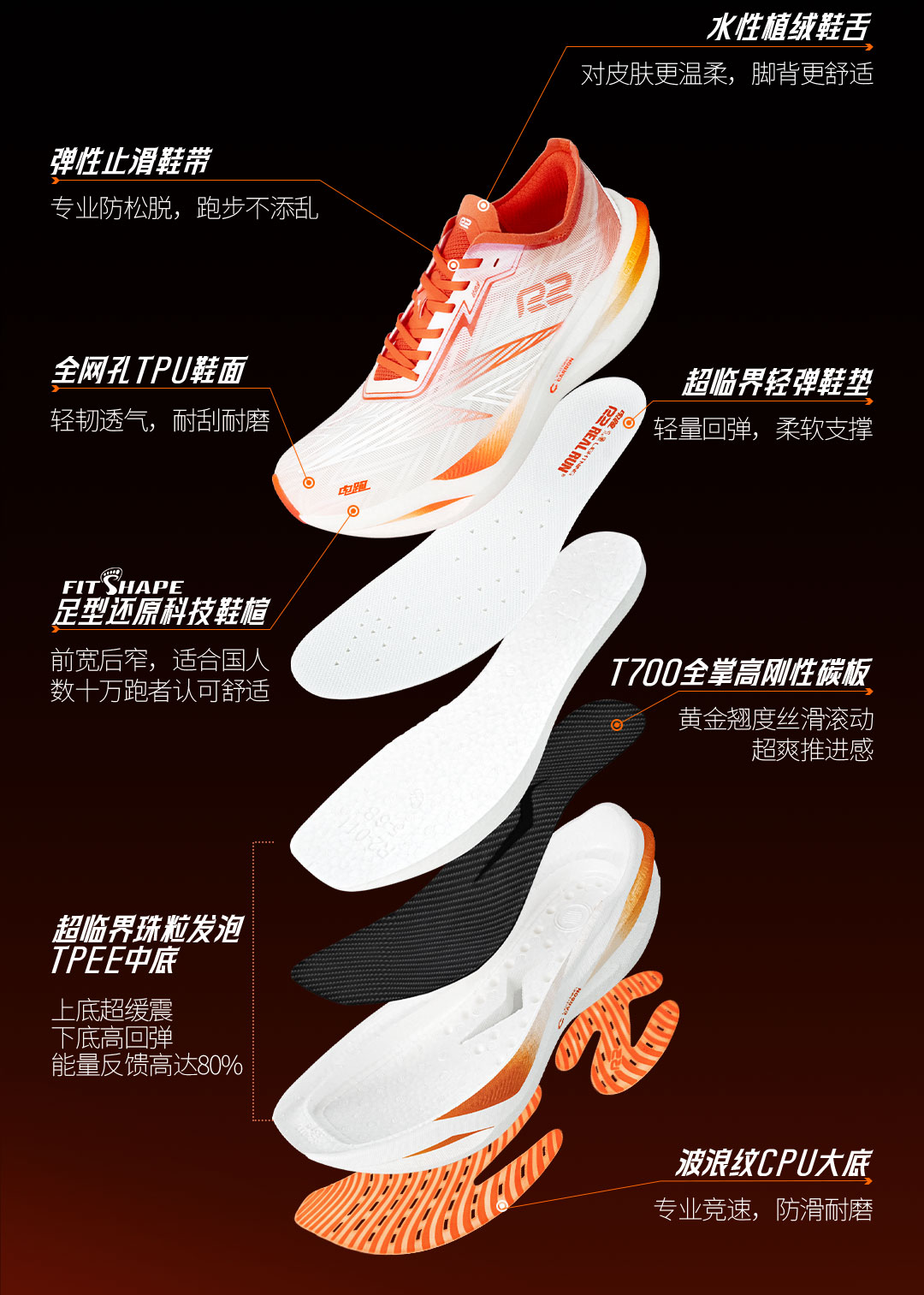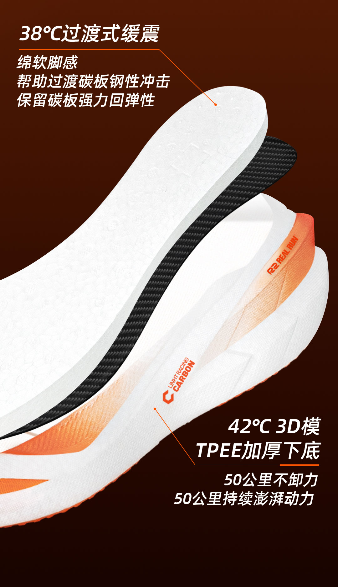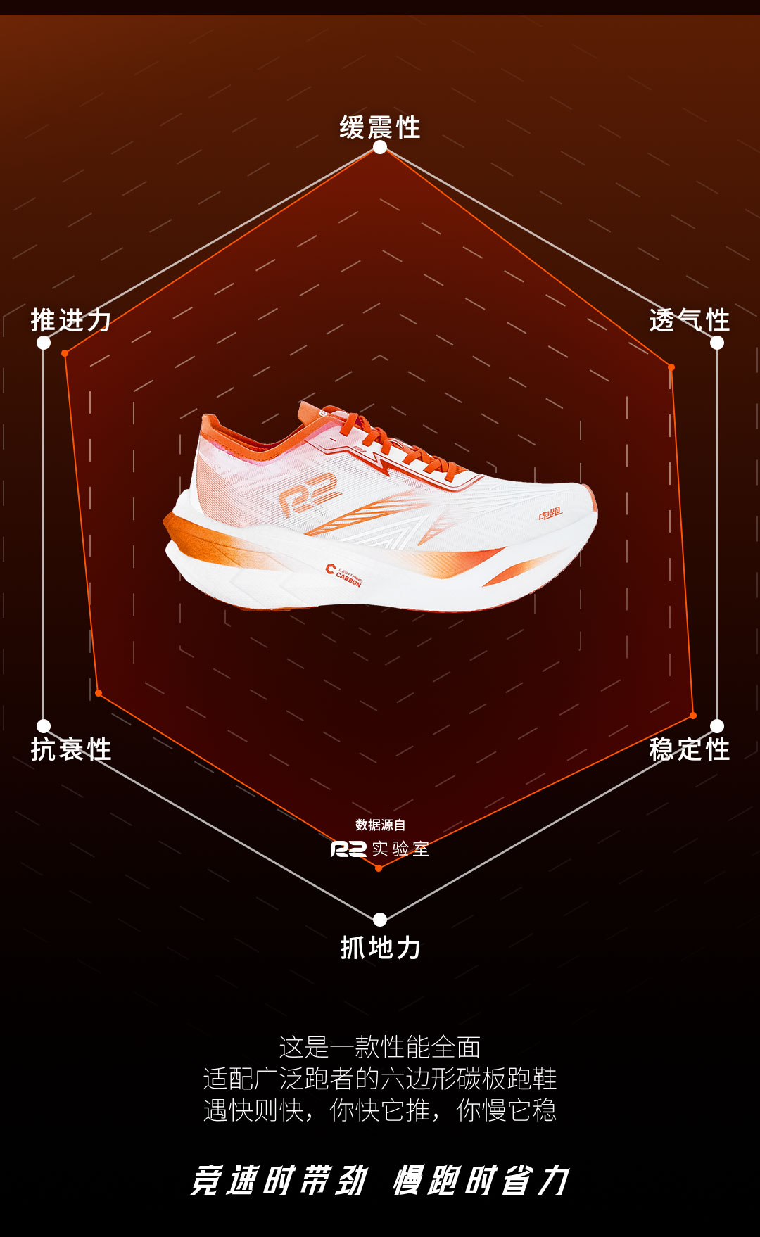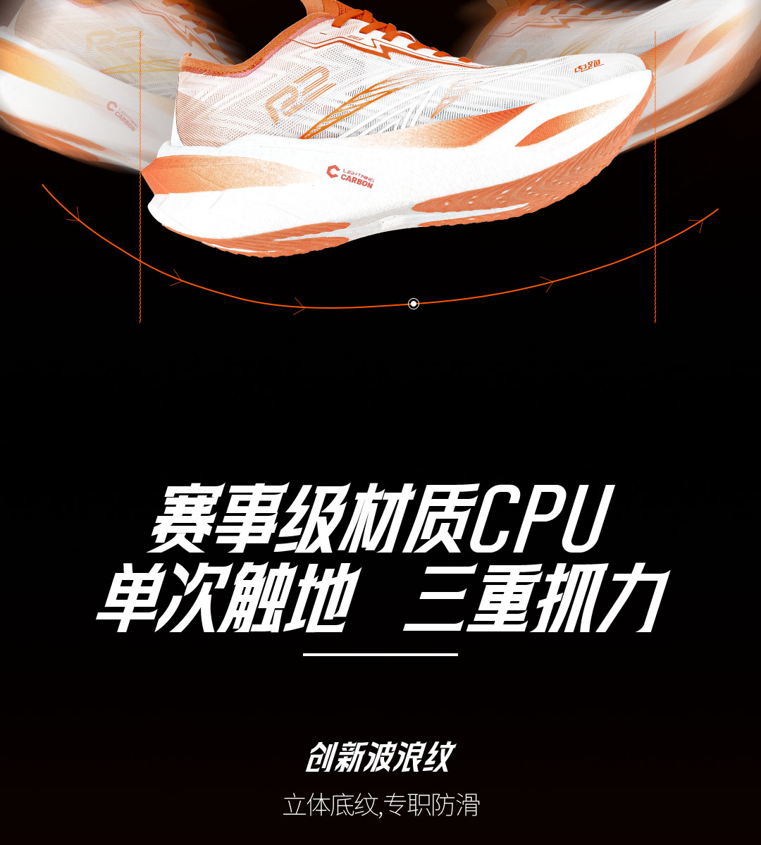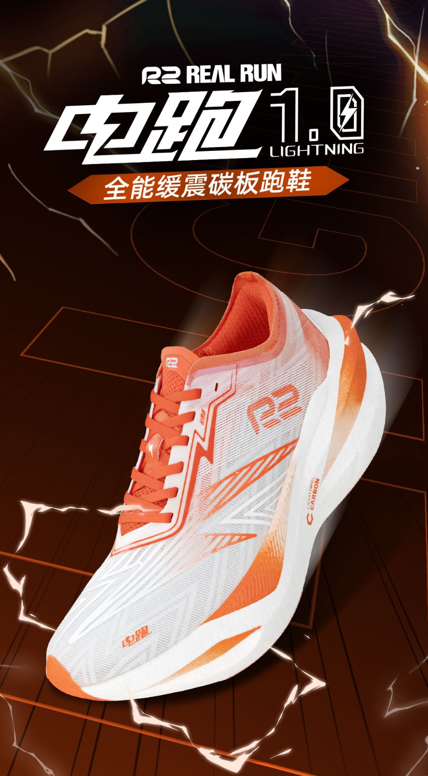 R2 电跑1.0竞速跑鞋 全掌碳板跑鞋 马拉松跑步鞋 专业回弹减震运动鞋 橙/白
