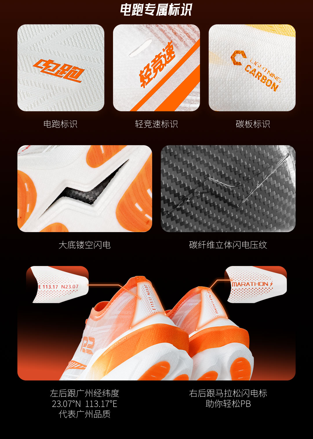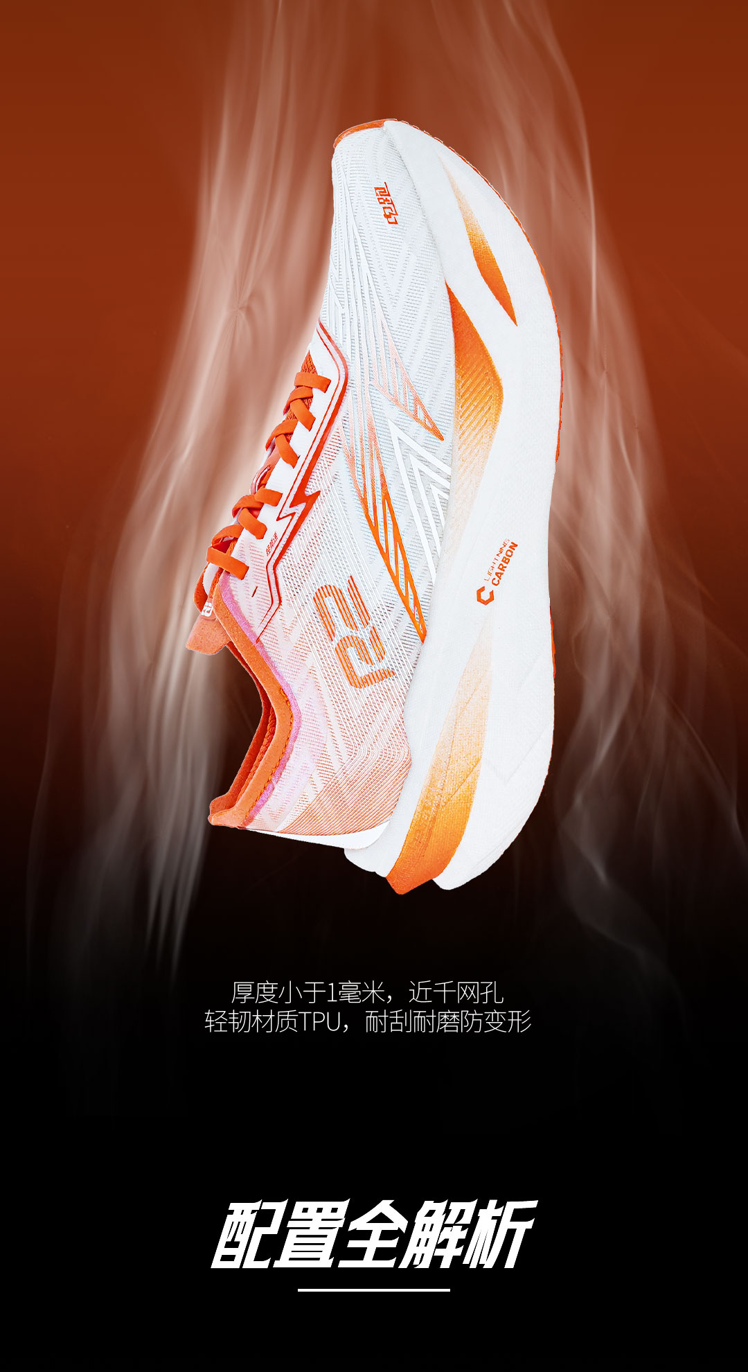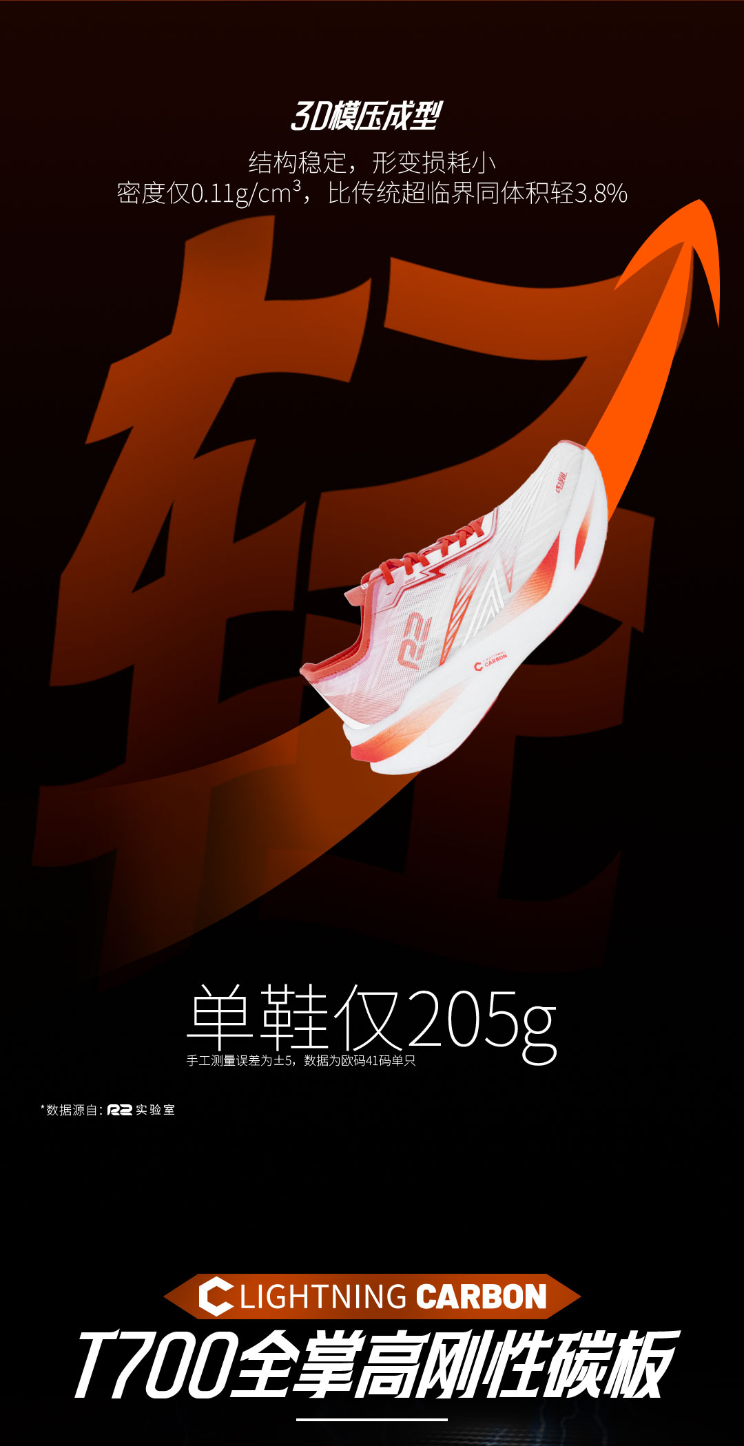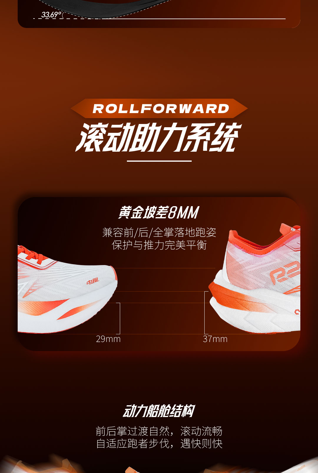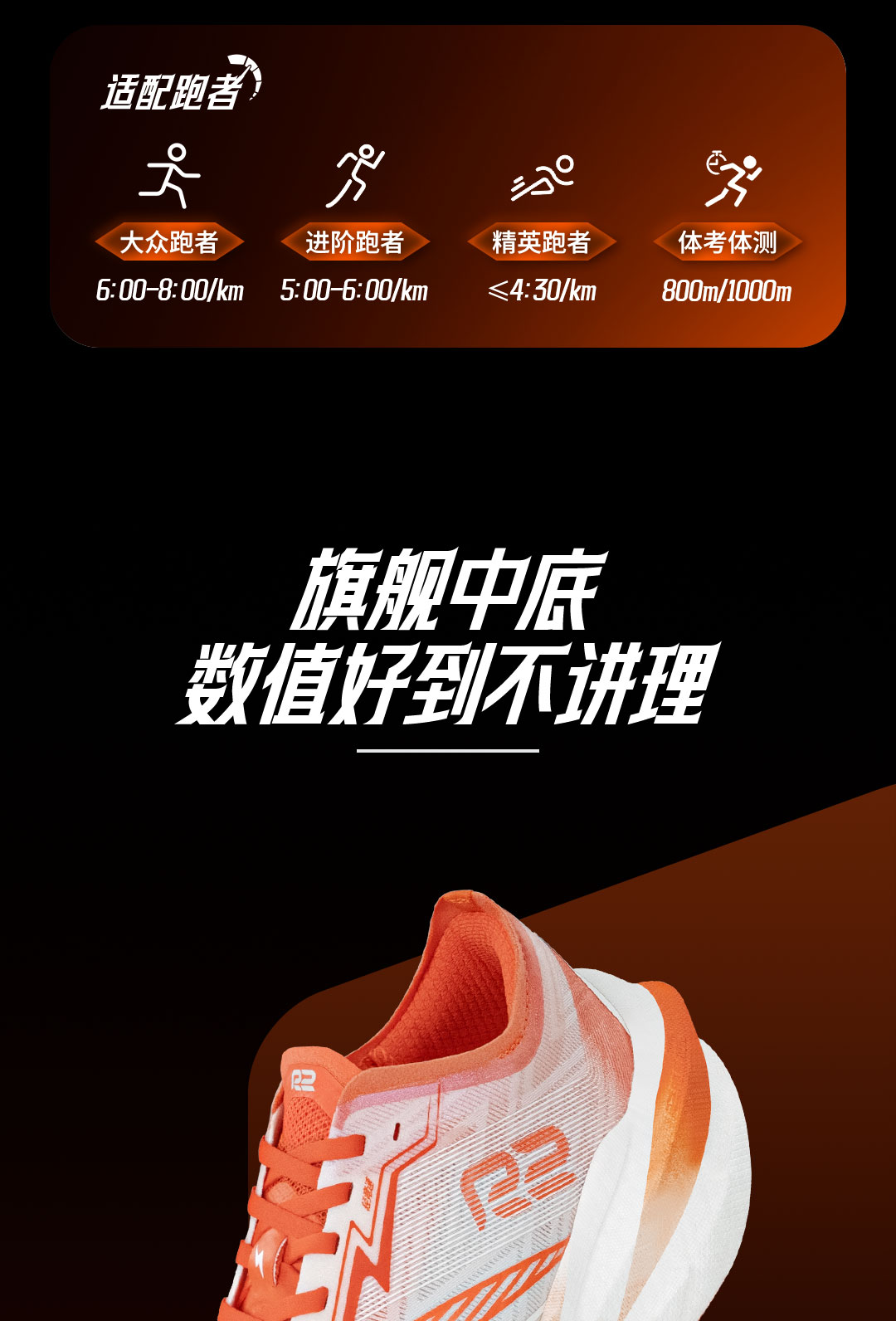 R2 电跑1.0竞速跑鞋 全掌碳板跑鞋 马拉松跑步鞋 专业回弹减震运动鞋 橙/白