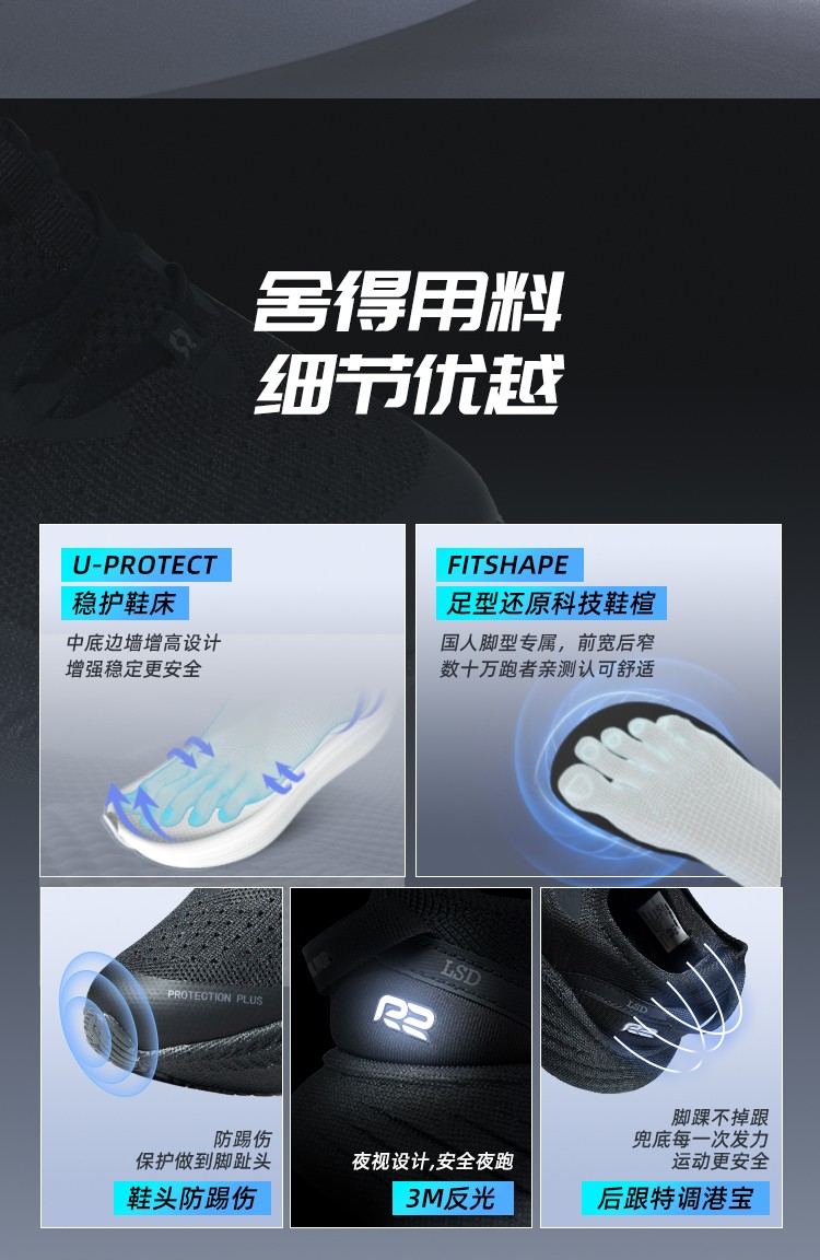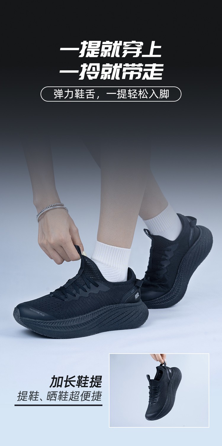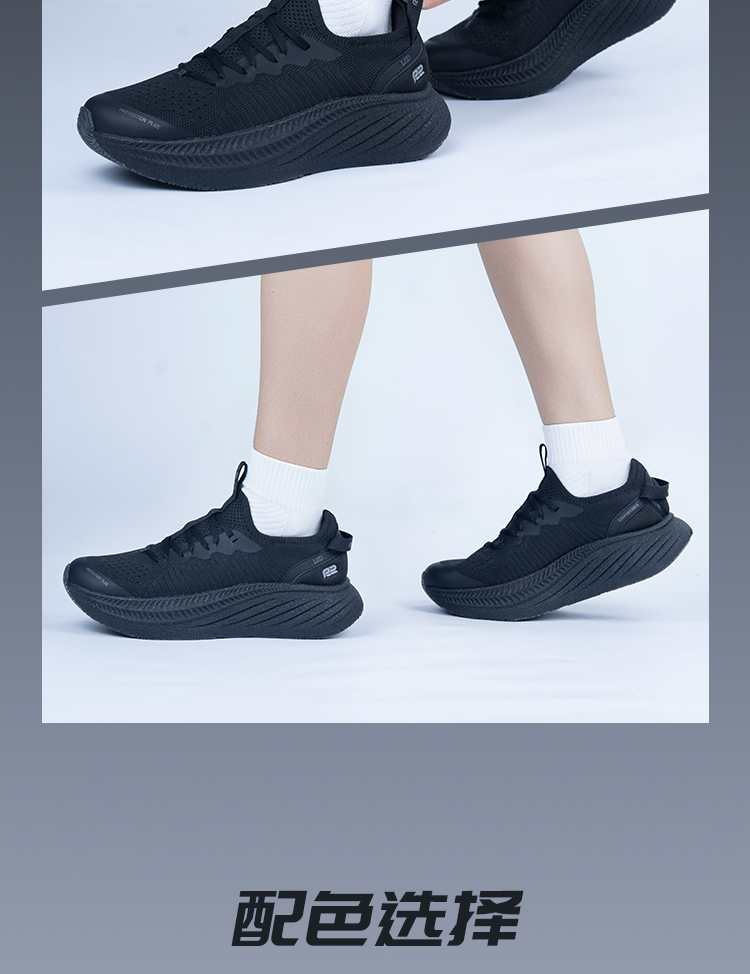 R2 无极2.0慢跑鞋 男女轻便厚底缓震跑鞋 马拉松跑步鞋 通勤训练运动鞋 暗夜黑