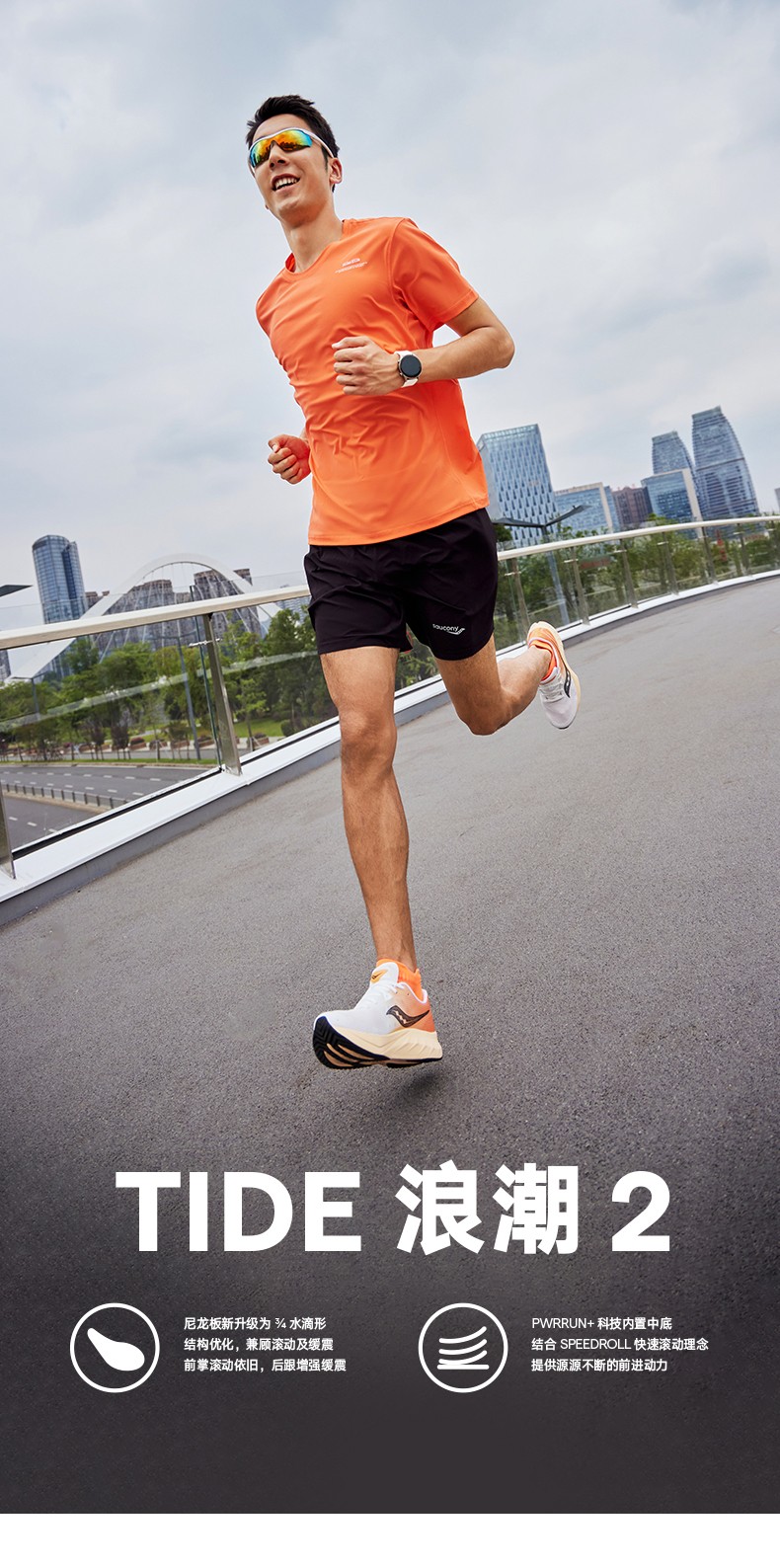 Saucony索康尼 男 TIDE浪潮2跑步鞋 日常慢跑训练鞋 低帮跑步鞋 S28216-8 白桔黑