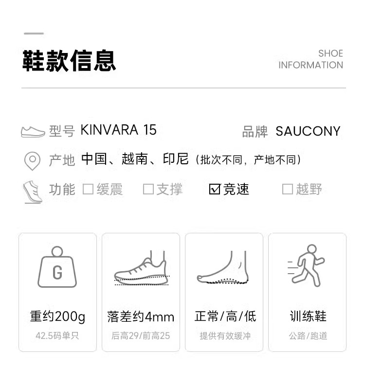Saucony索康尼 男 菁华K15跑步鞋 轻便舒适跑鞋 轻量体测减震竞速运动鞋 S20967-230 白灰