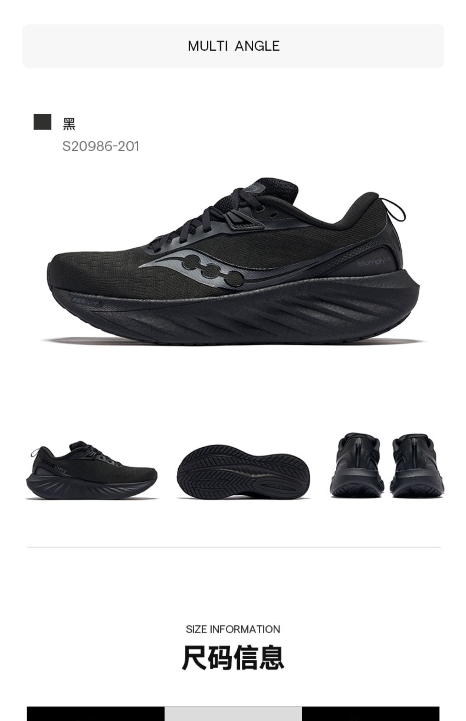 Saucony索康尼 男 胜利22 SE跑步鞋 舒适运动鞋 休闲缓震跑鞋 S20986-201 黑色