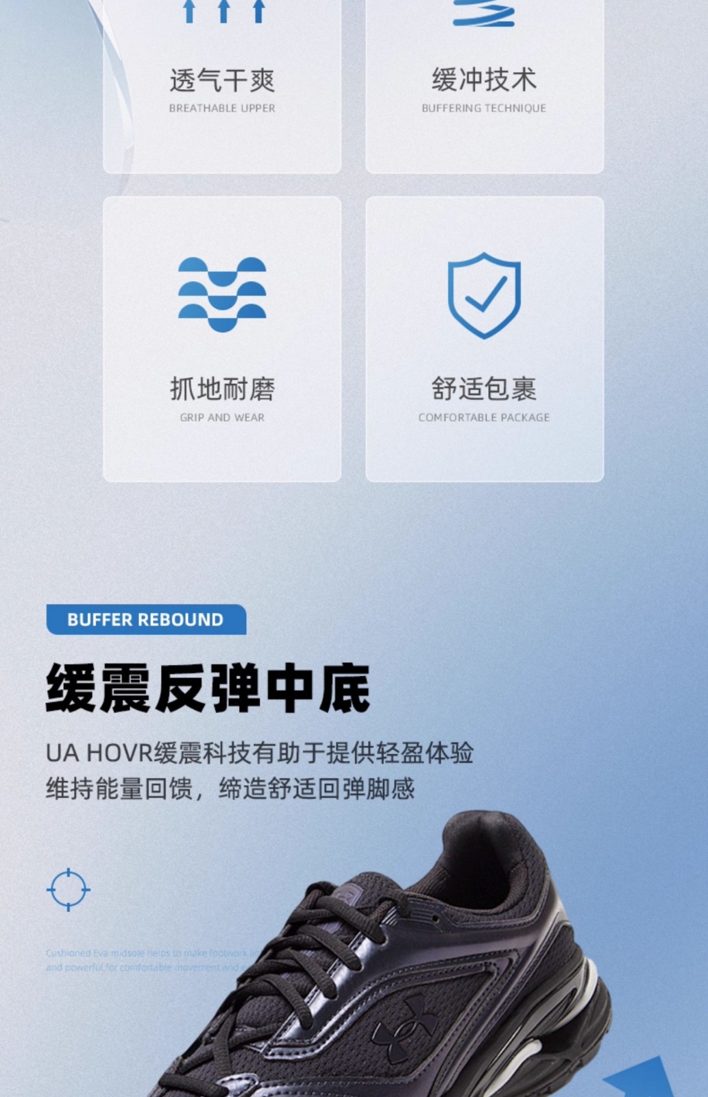 UA HOVR缓震科技有助于提供轻盈体验,维持能量回馈,缔造舒适回弹脚感。