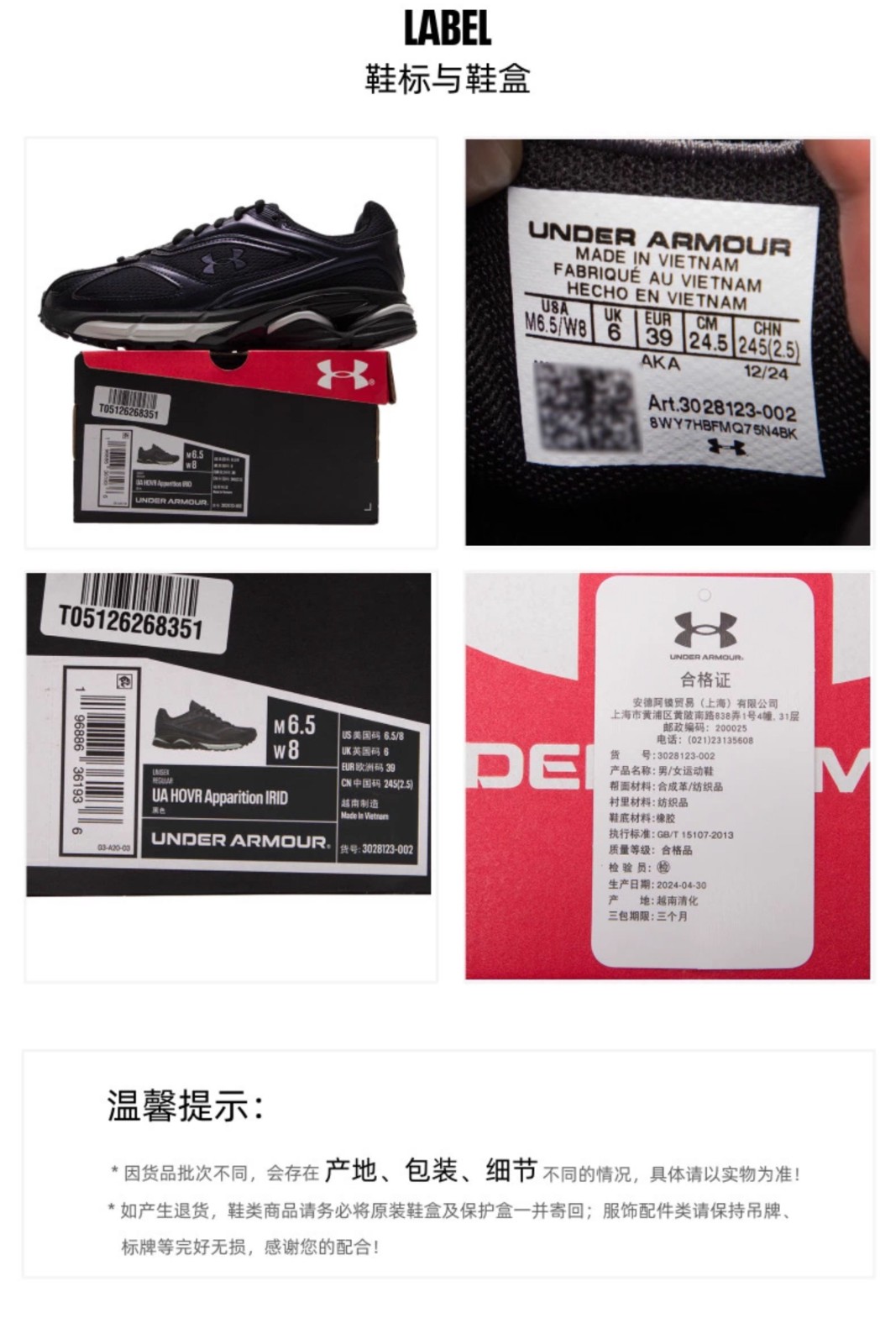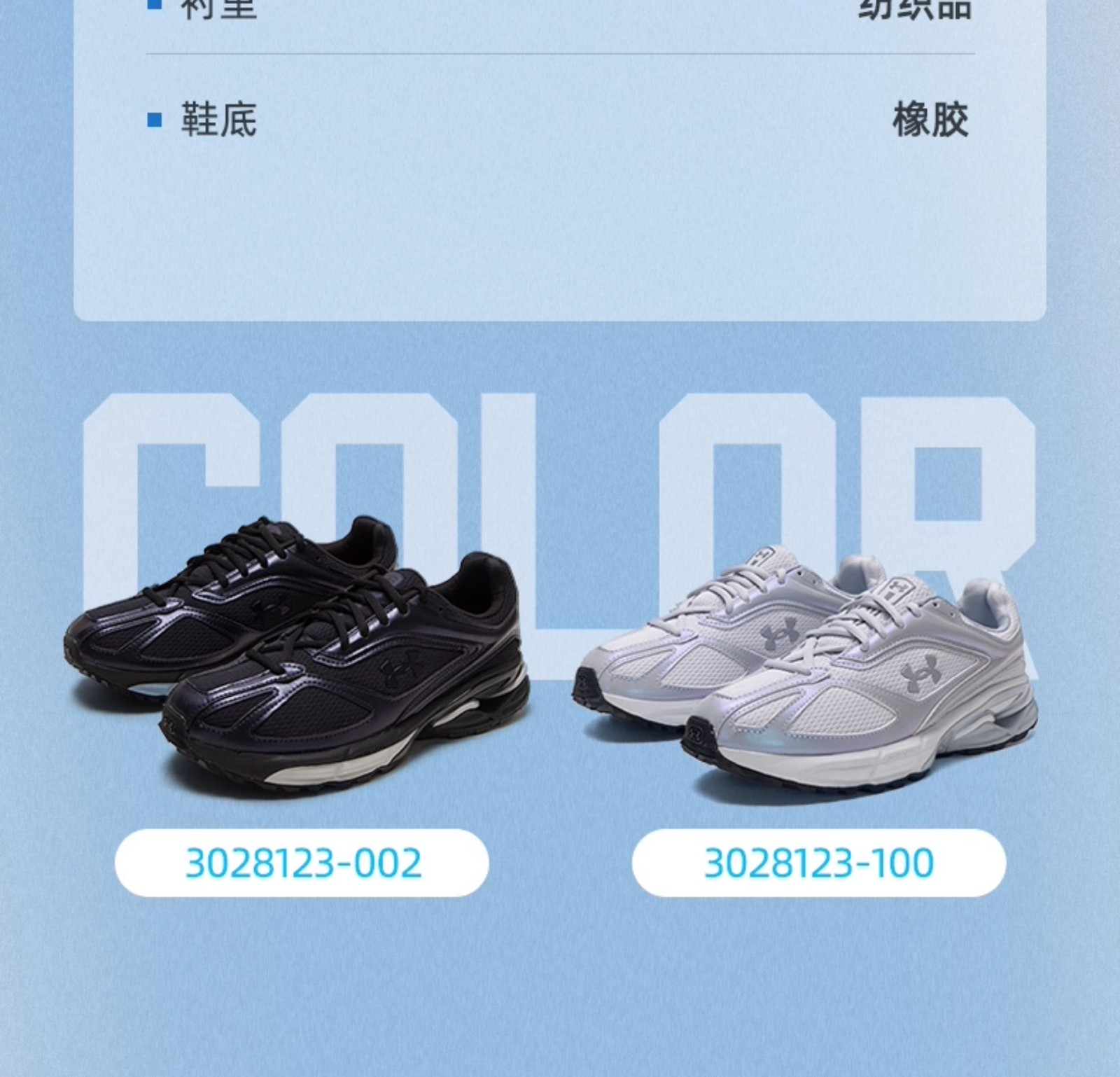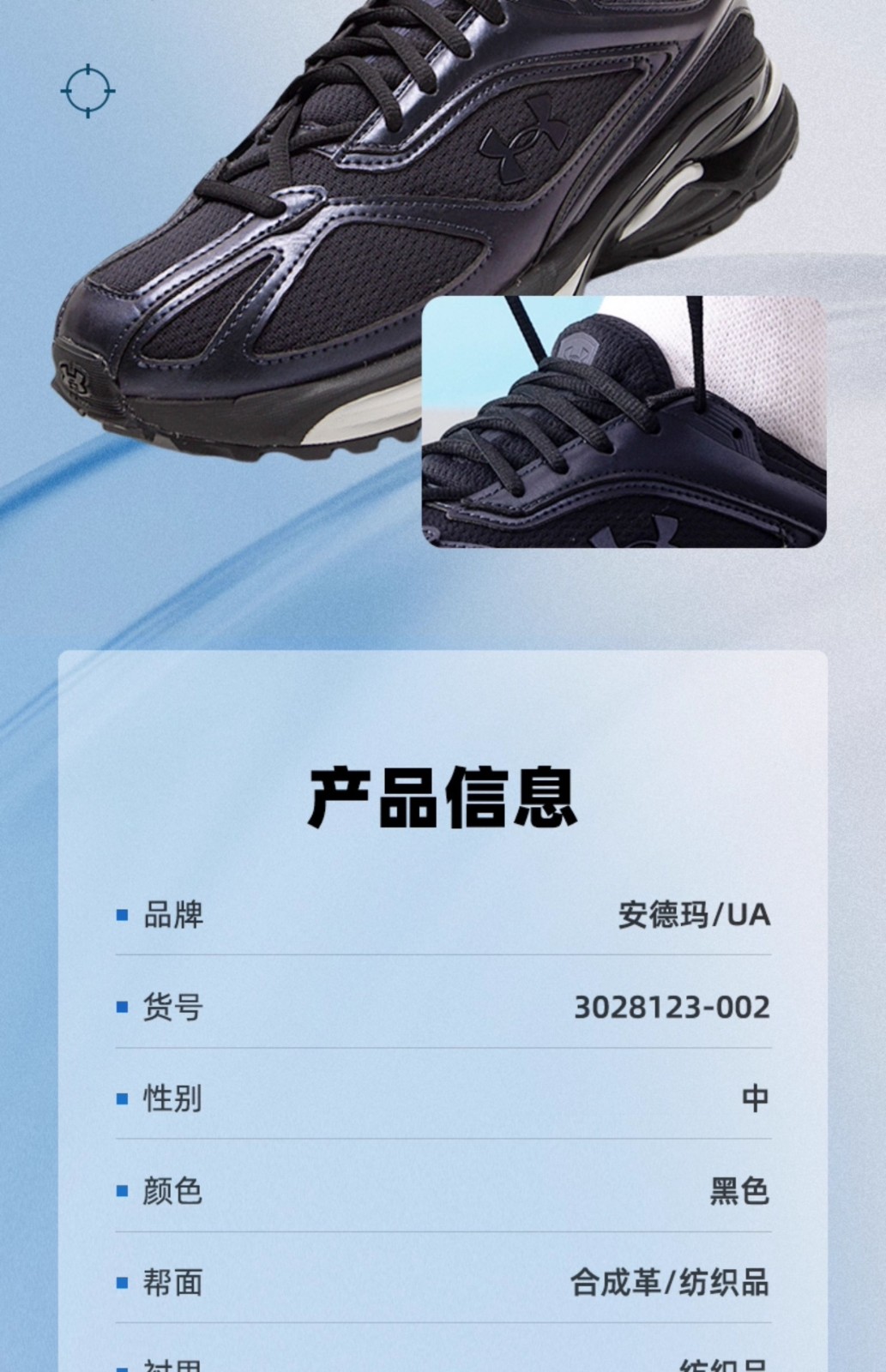 Under Armour安德玛 中性休闲鞋 秋季新款运动鞋 轻便缓震跑步鞋 舒适透气休闲鞋 3028123-002 黑色