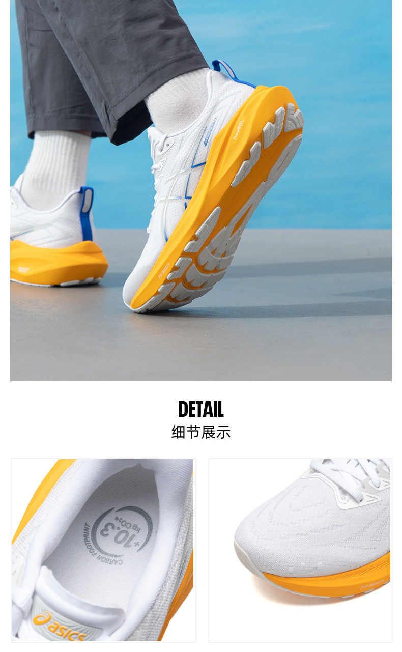 中底处配有全掌FF BLAST? PLUS缓冲层与PureGEL?科技